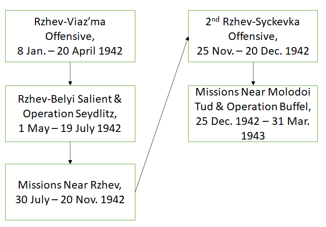 - Missions in the Rzhev – Belyi Salient & Operation Seydlitz