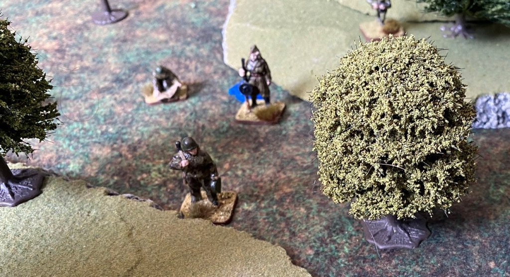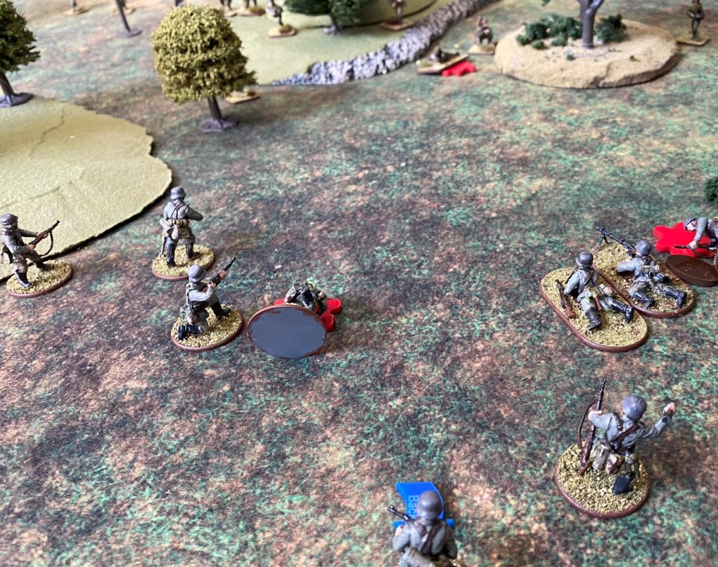 - Soviet LMG fires – German Rifleman 4 Ducks Back; Riflemen 5 and 6 go OOF.