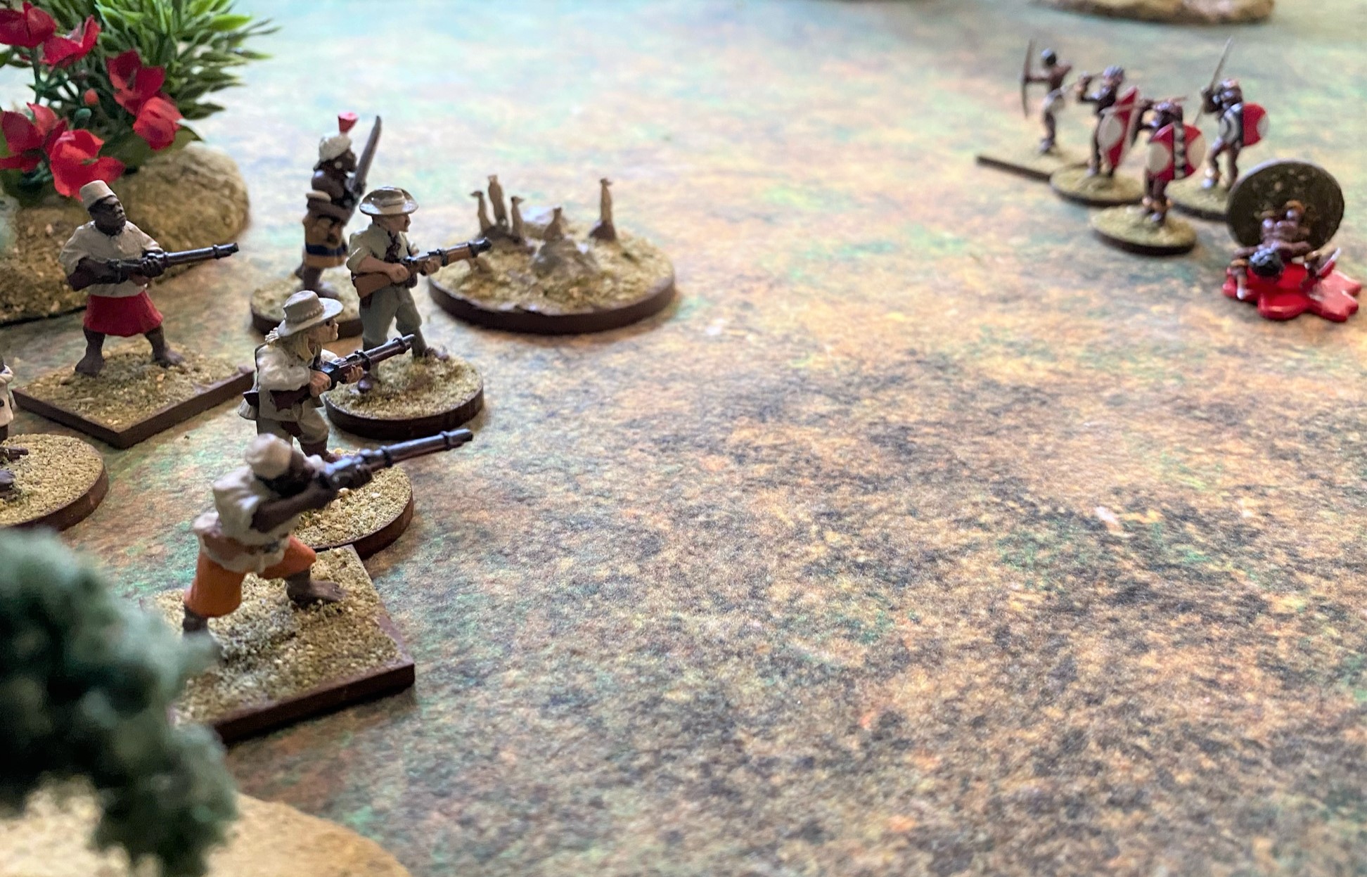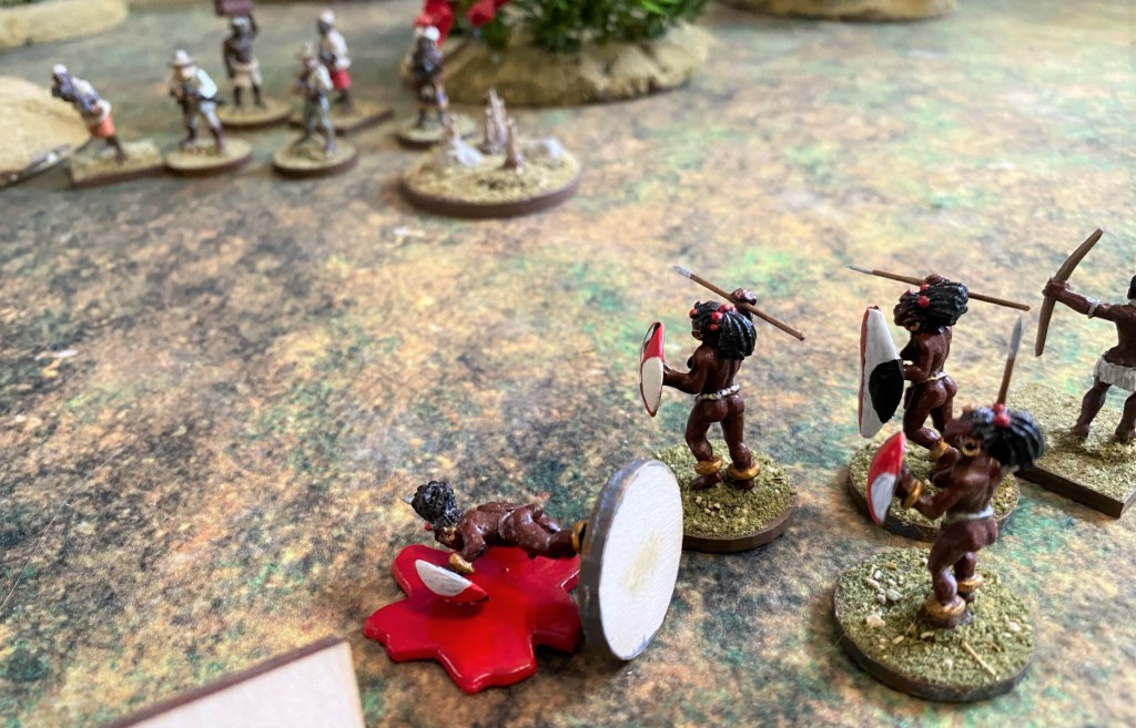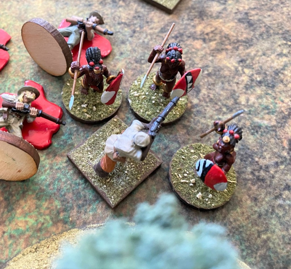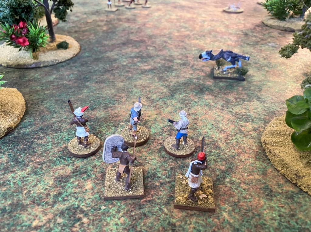 As with Mission St. Mary, the non-native forces are better at shooting and should keep the natives at arms length. If the natives do charge into melee, expect savage butchery. I think if Bennett’s party had not lost the Will to Fight (thanks to double sixes), the game would have ended swiftly with the Adventurers eliminating the Okbona before they could get into charge range.