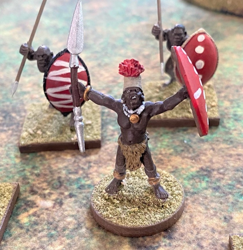In the RMA’s activation, the First Platoon volley fires at the Mountain Song Bendi Shujaa wa Kike. The result is that the women warriors, not being in range to charge, move closer to the First Platoon.