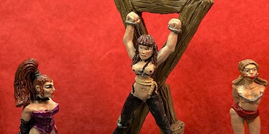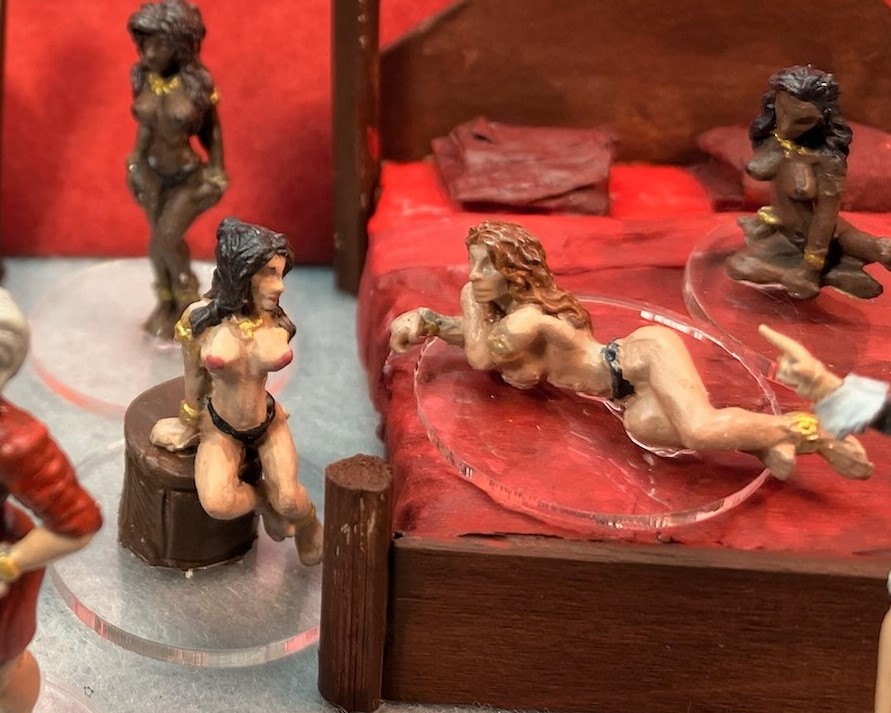 While the walls were painted the almost the same color, the red tone was brighter and the artwork on this floor was tastefully erotic. The first room she encountered on the second floor had two sex swings with a woman strapped into each one. On the wall was a rack holding various riding crops, ticklers and sex toys. One of the women was laughing uncontrollably while being tickled with a feather.
