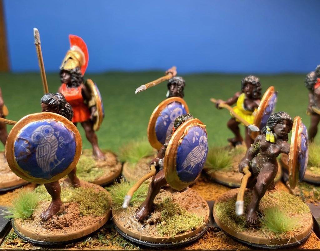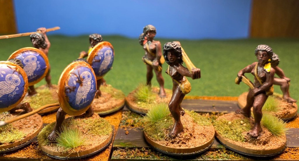 I need some diversity in my Amazons, so I painted these with a dark skin tone. I post another update next week.