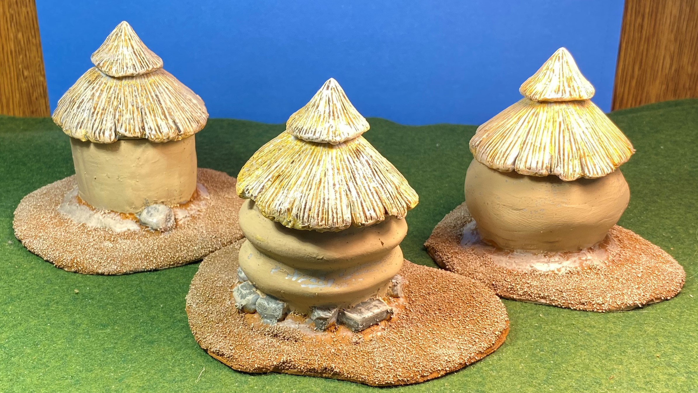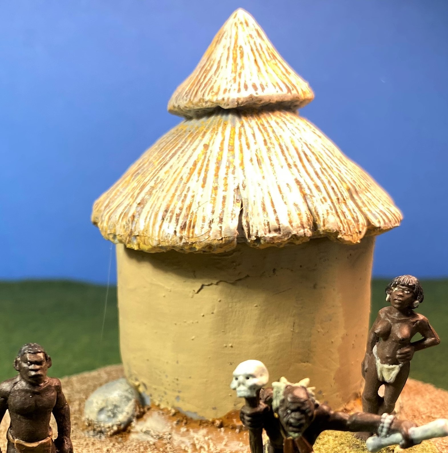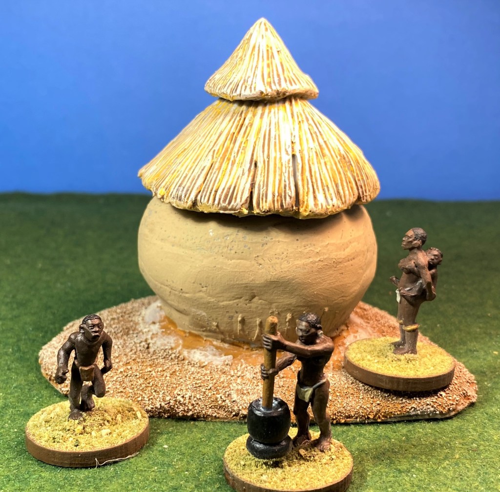 I purchased the African Village Set, which comes with a veranda, four huts, and two granaries. In addition, I had also purchased two other African huts and a granary. I decided to paint the granaries first since they are smaller and gave me the opportunity to get realistic colors for both the granary and its thatched roof. I would then use the same colors for the huts.