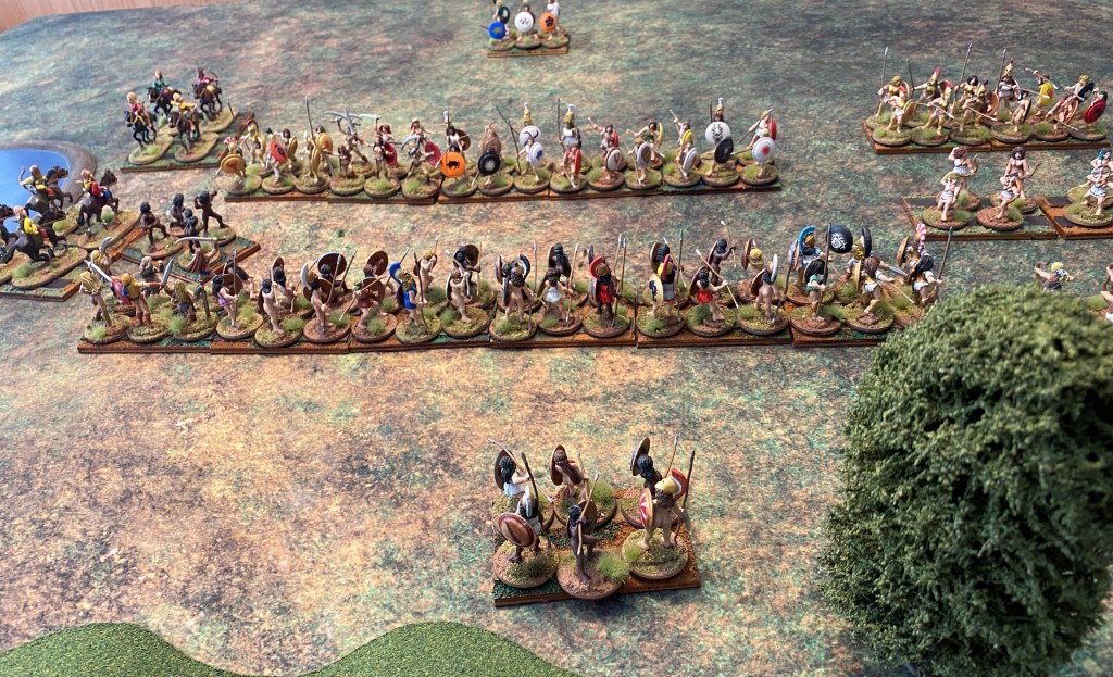 The object of the battle is to create a “katastrophe” – the overthrowing or turning of the enemy. You can immediately see we get our English word “catastrophe” from this word. In this turn, both sides seek this goal, it is more difficult for the Nycenaeans since they have lost their general and two units of elite troops.