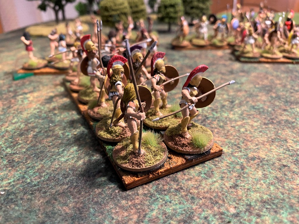 The Epidromos, the charge, it is the point where the hoplites clash with one another. In some accounts they ran into the opposing side, in others they marched briskly into contact. Whether or not there was a noticeable shock, this is where the carnage began.
