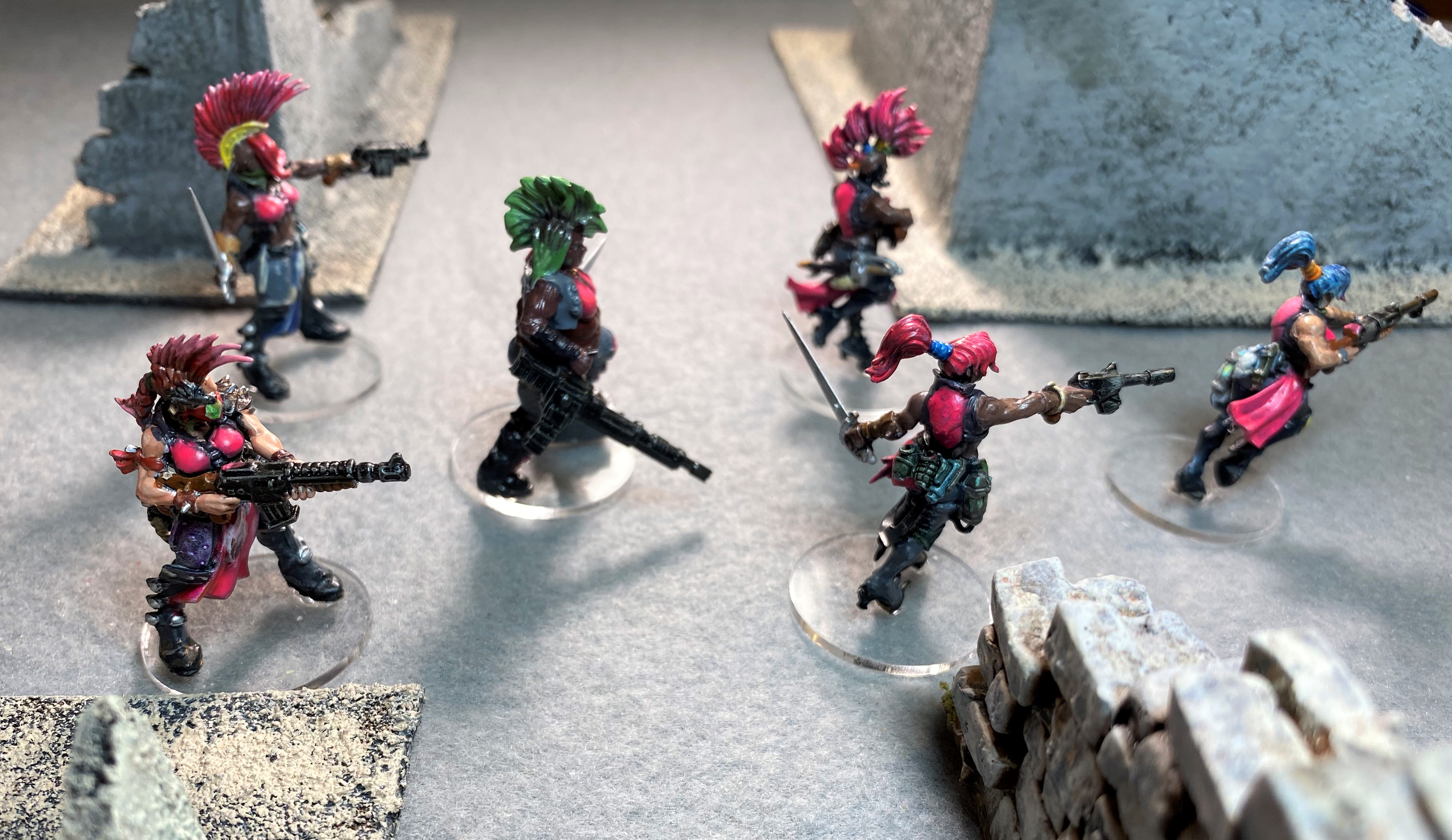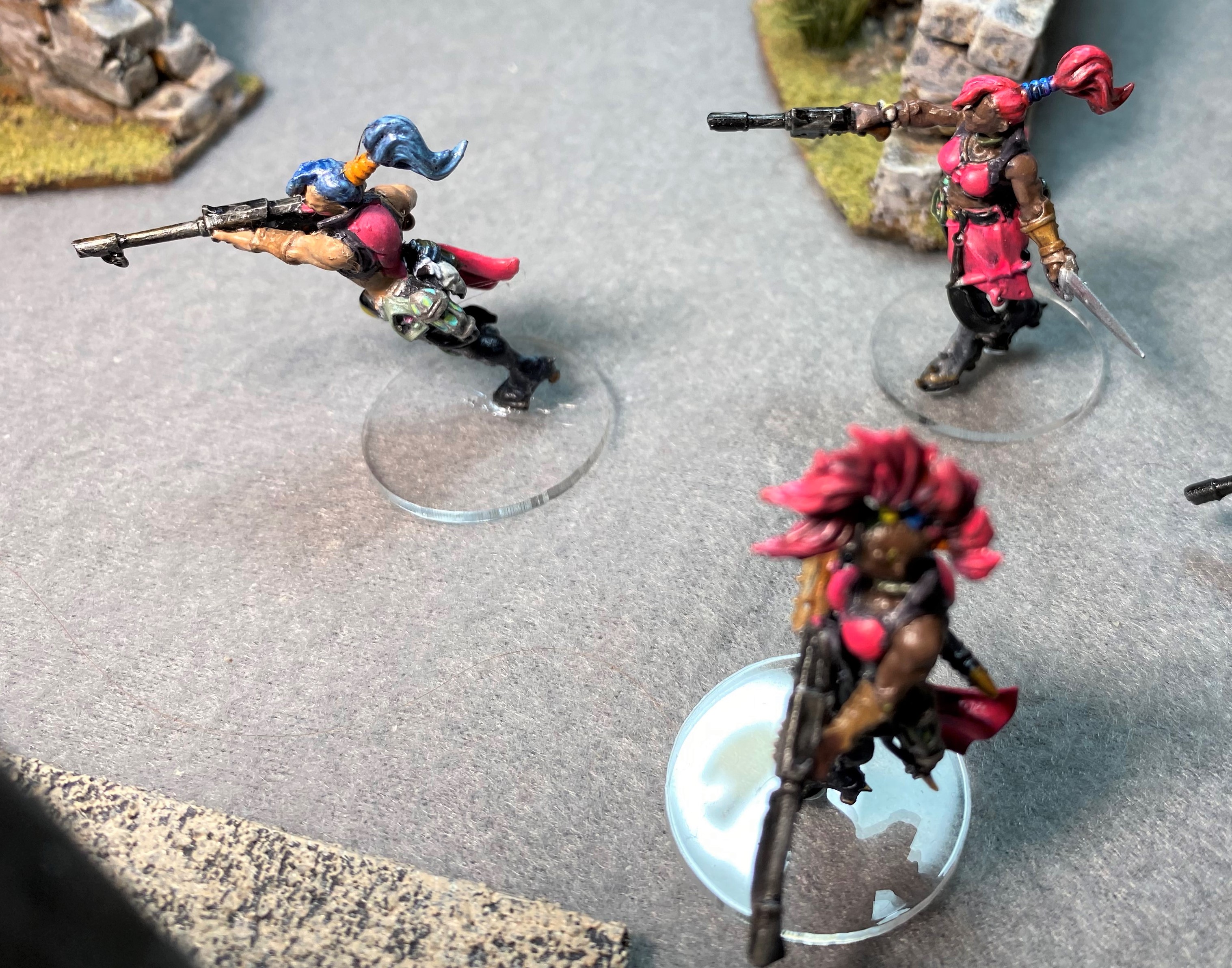 Pixies activation. Pee Stain recovers from duck back. Mystic Rhaine fires at the remaining Warrior sending it OOF.