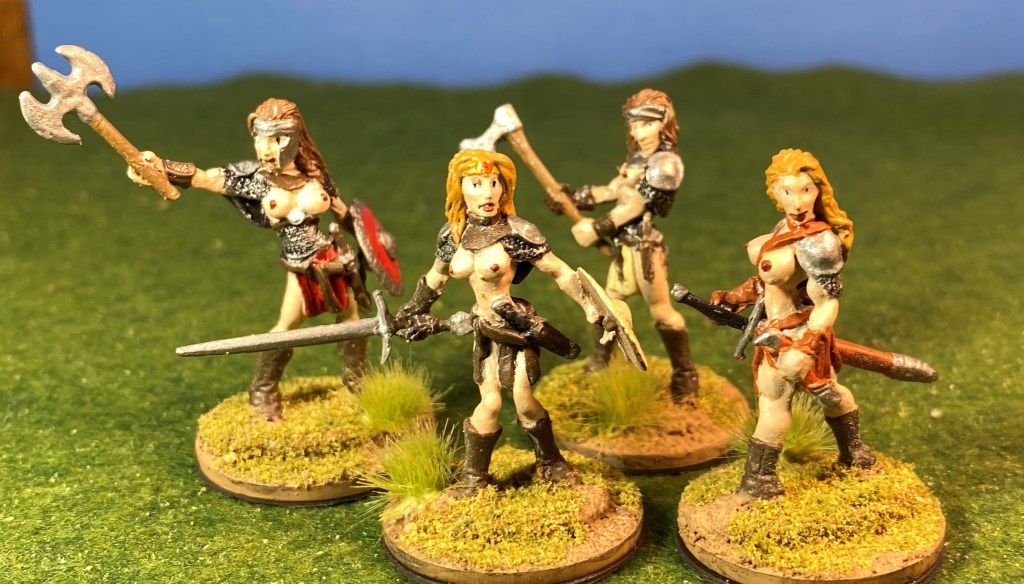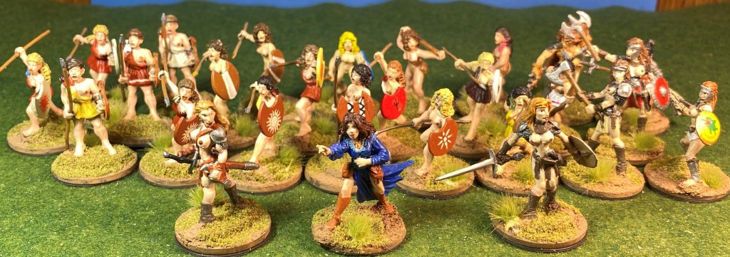 With everything going on, I’m still plugging away at my Amazon collection. The goal is to rebase the completed figures from square bases and to assemble and paint the Amazons remaining in the massive pile of unfinished miniatures.
