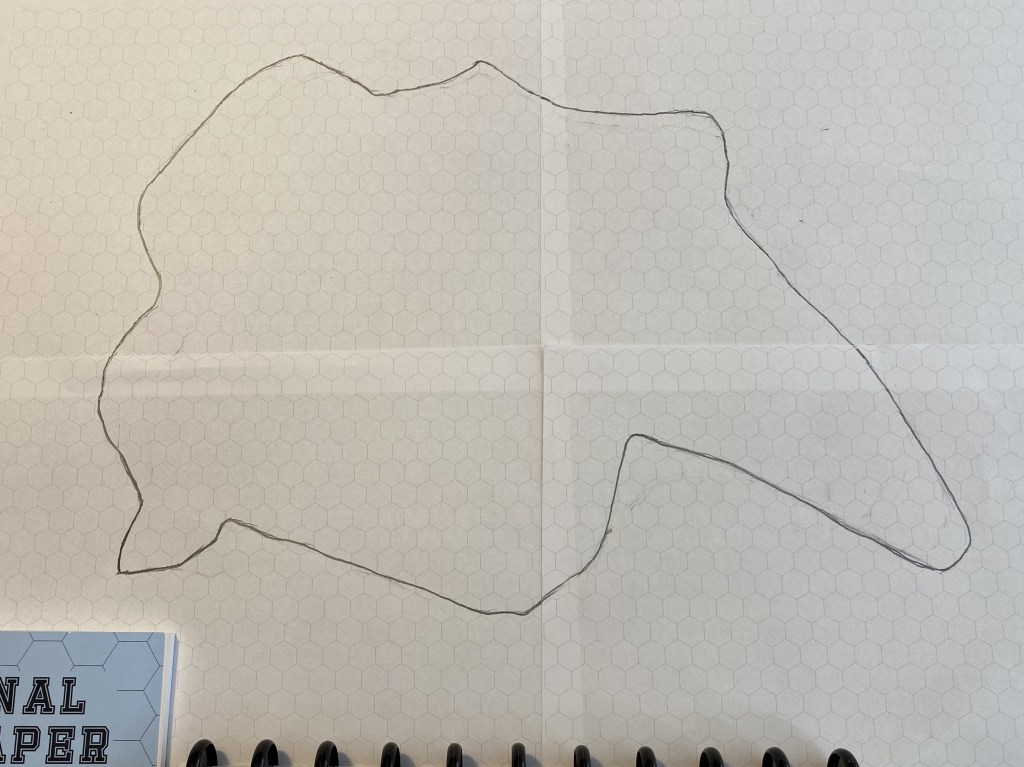 With the outline done, the next step is to fill in the terrain features of Valkae. To add terrain features to the map, I used drawing techniques from WASD20’s series on how to draw fantasy maps to draw the terrain features, and Tony Bath’s Setting Up a Wargames Campaign found in the book Tony Bath’s Ancient Wargaming.