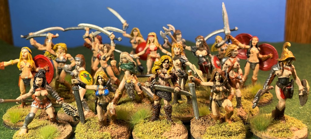 Some very nice Amazons! Many I can identify, but some I can’t, and will just have to wait until you mention them specifically. Earlier, you mentioned having plastic Amazons. Were these the Wargame Factory figures? I could never make my mind as to whether or not I liked them based on the box art and would love to see some of them all painted up.