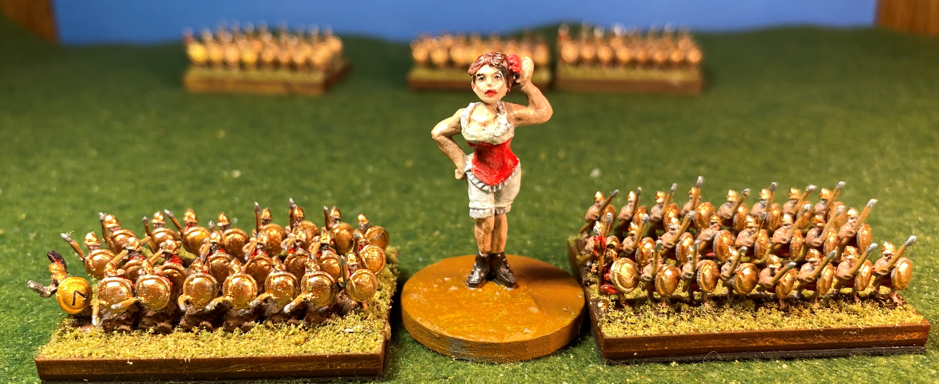 Some years ago, I started a project to refight the First Battle of Mantinea in 418 B.C.E. It’s a significant battle in that it is the only land battle of the Peloponesian Wars where Spartan and Athenian troops actually fought one another. I started the project using 28mm figures, but soon realized I did not have a table large enough for the battle. So, I decided on 6mm figures.
