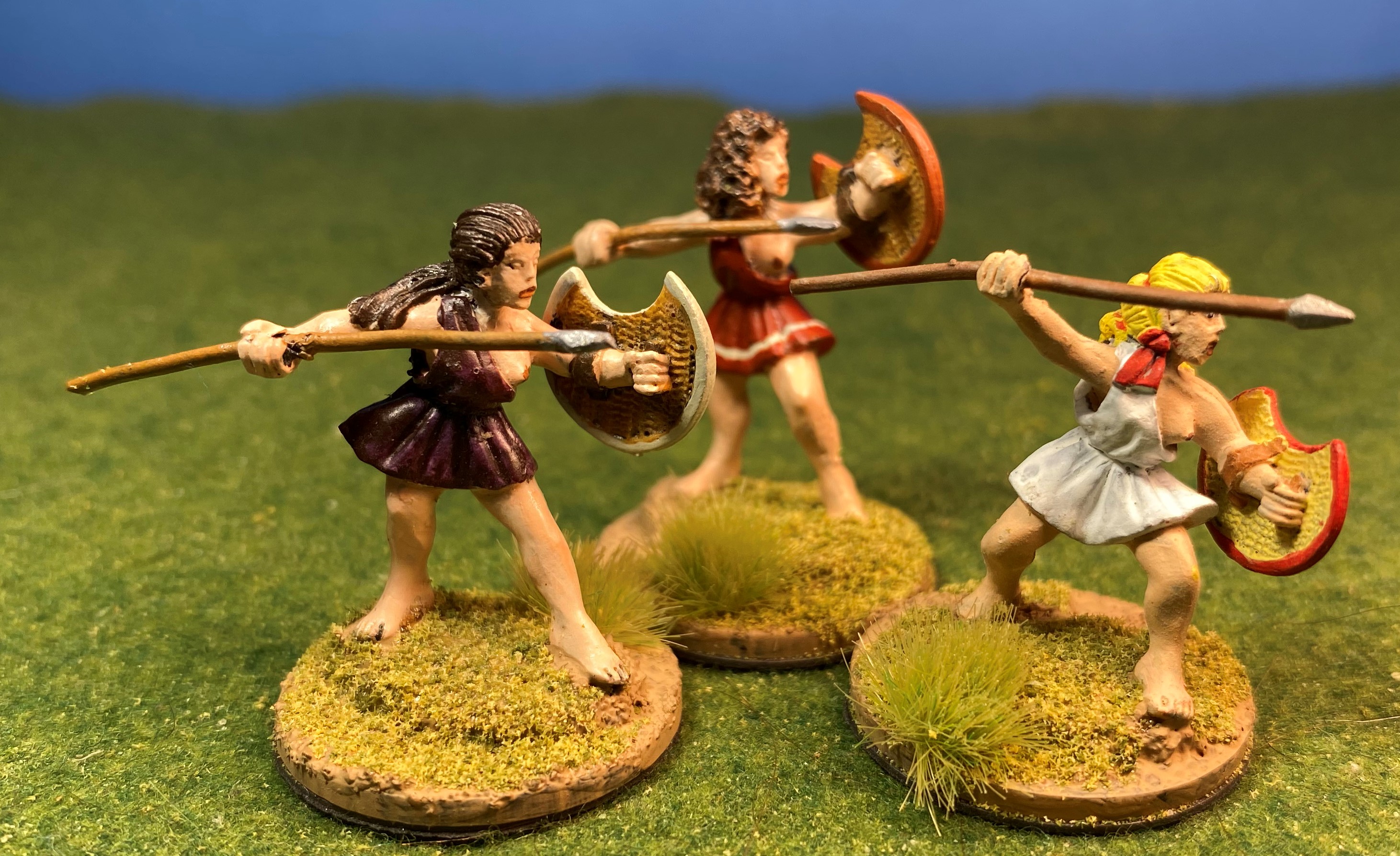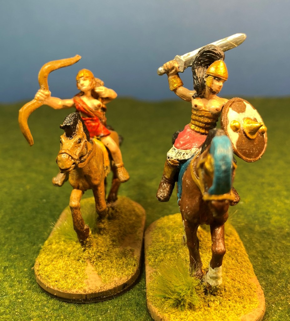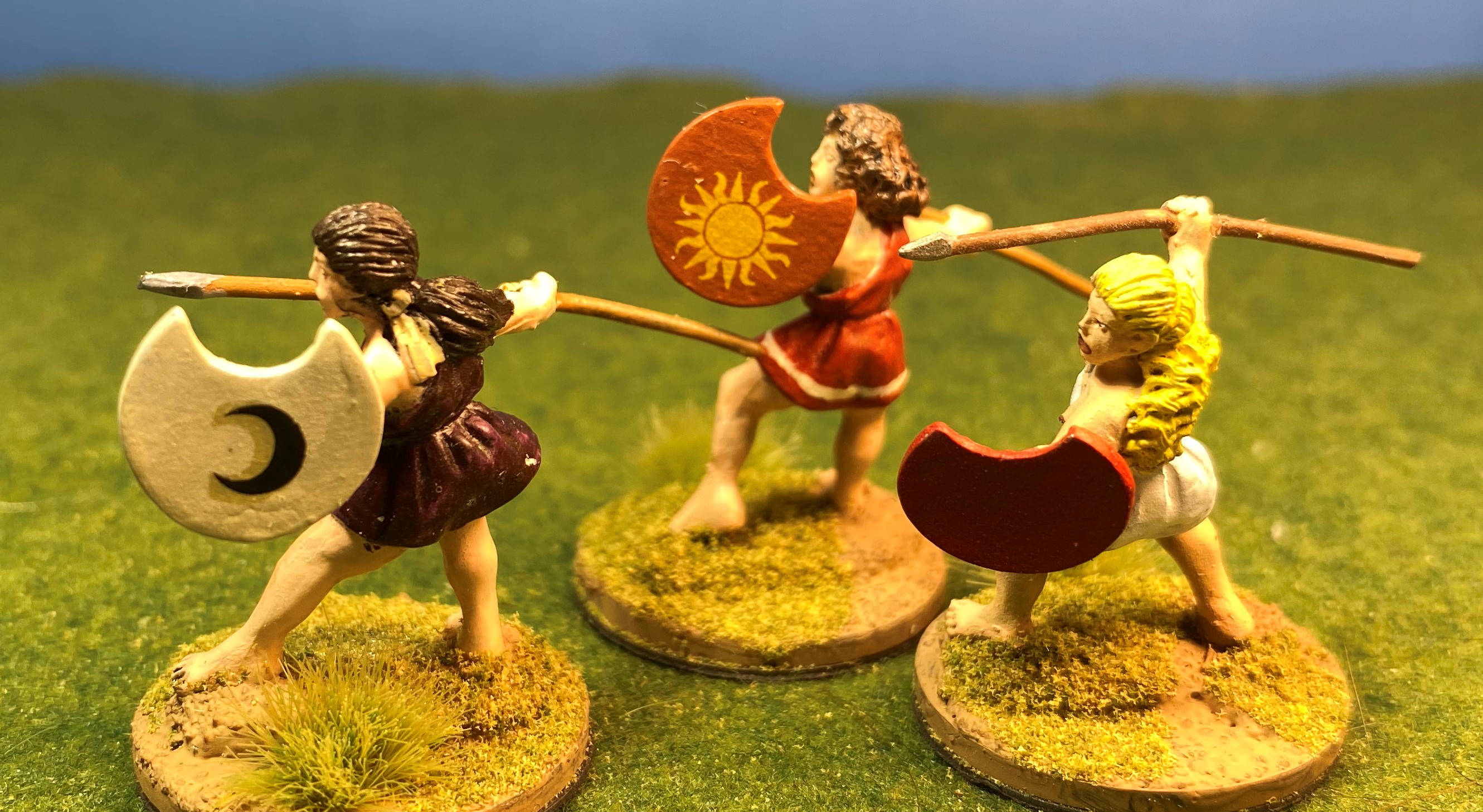 Finished another batch of Amazons – 16 more. Many, many more yet to come. It’s amazing & a little depressing at the number of unpainted miniatures languishing in boxes & drawers.