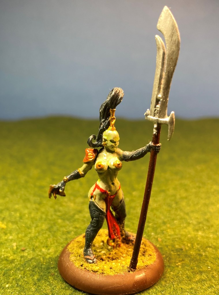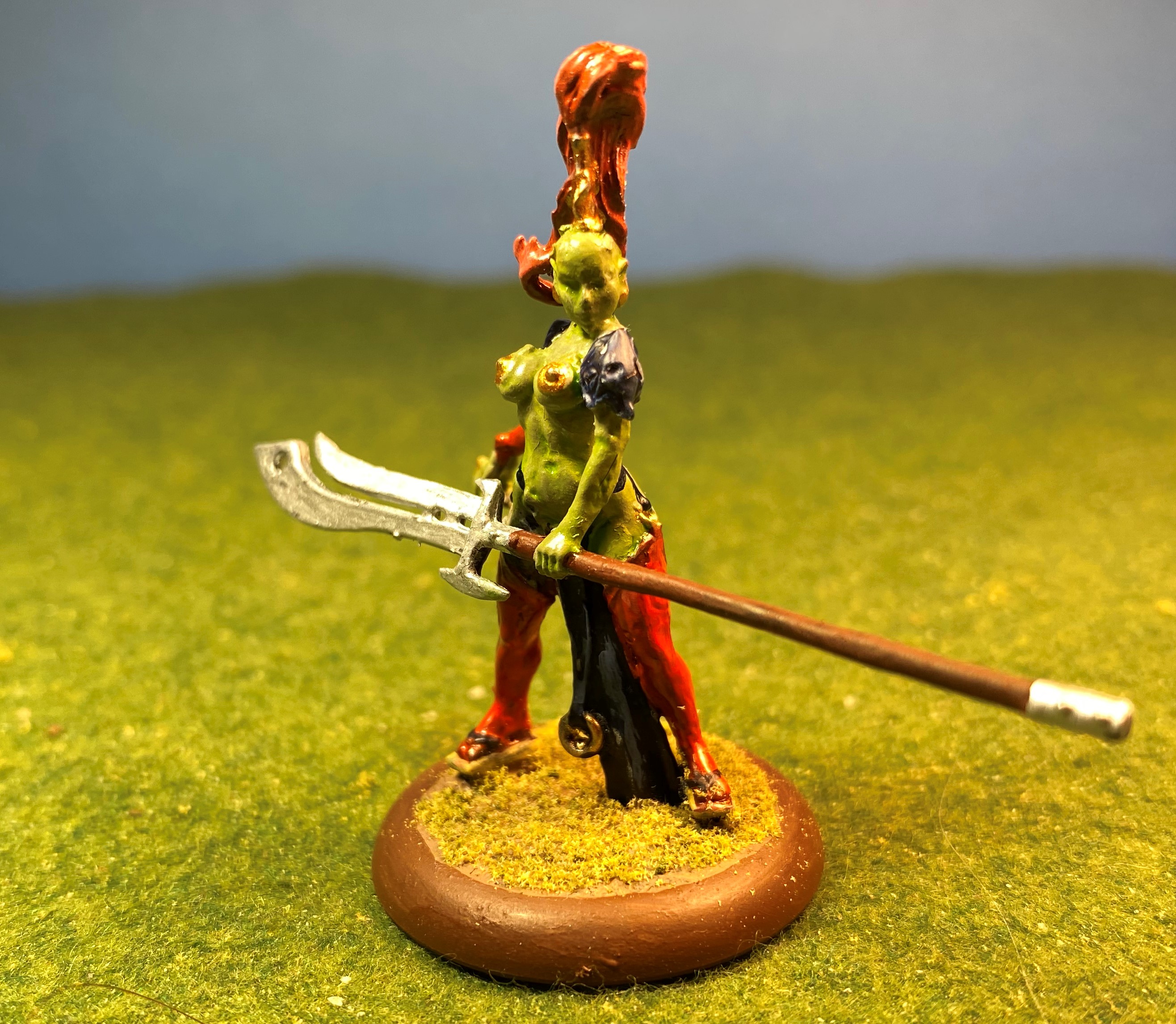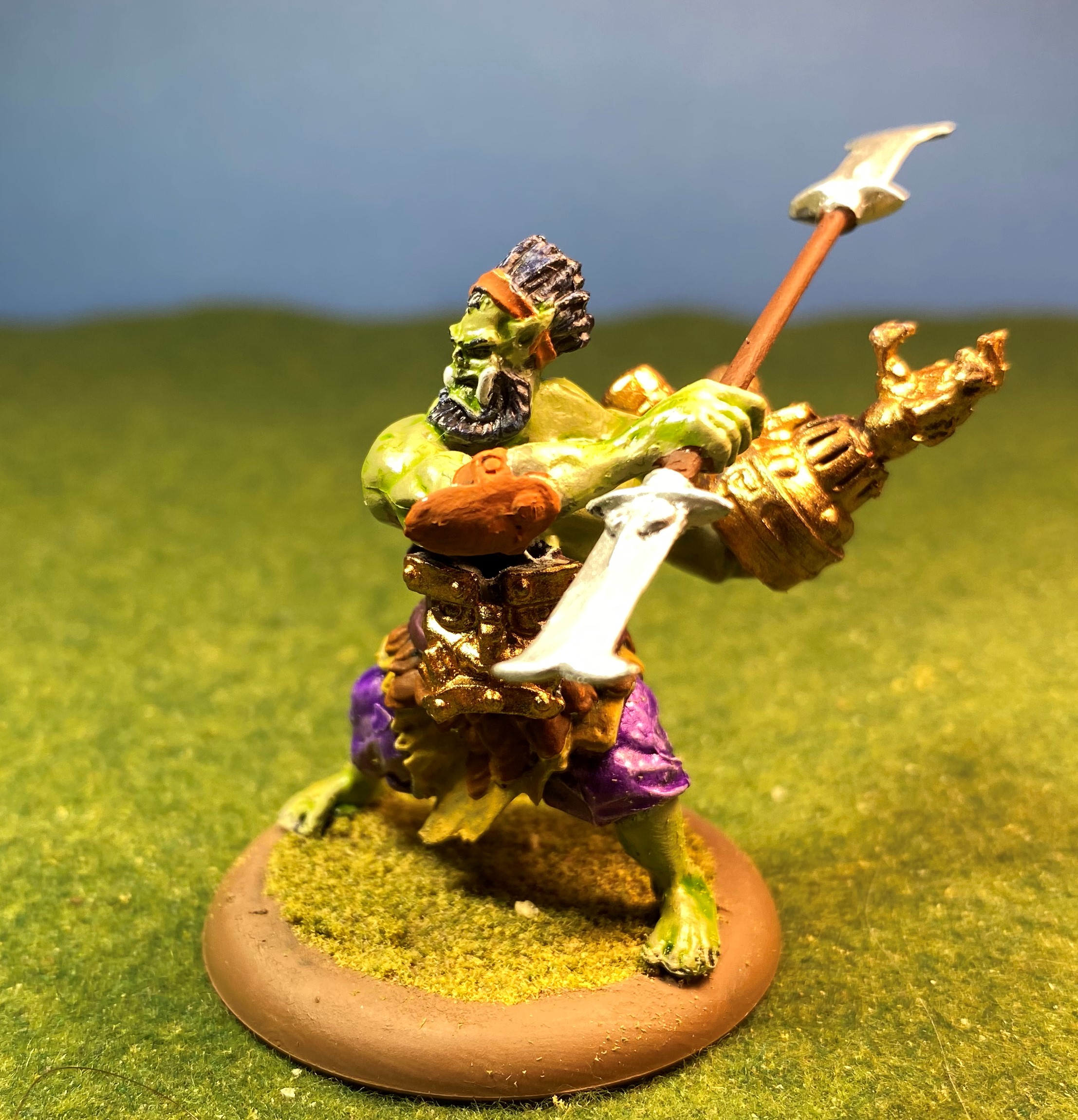 Anyway, I was able to pick up a $35.00 box of minis for only $7.00. In the box was a female Orc spell caster in a pose that said, “add me you your collection, now, foolish woman!” And I painted her up and have used her as an Orc spell caster ever since. The rest of the minis sat in the painting queue until now.