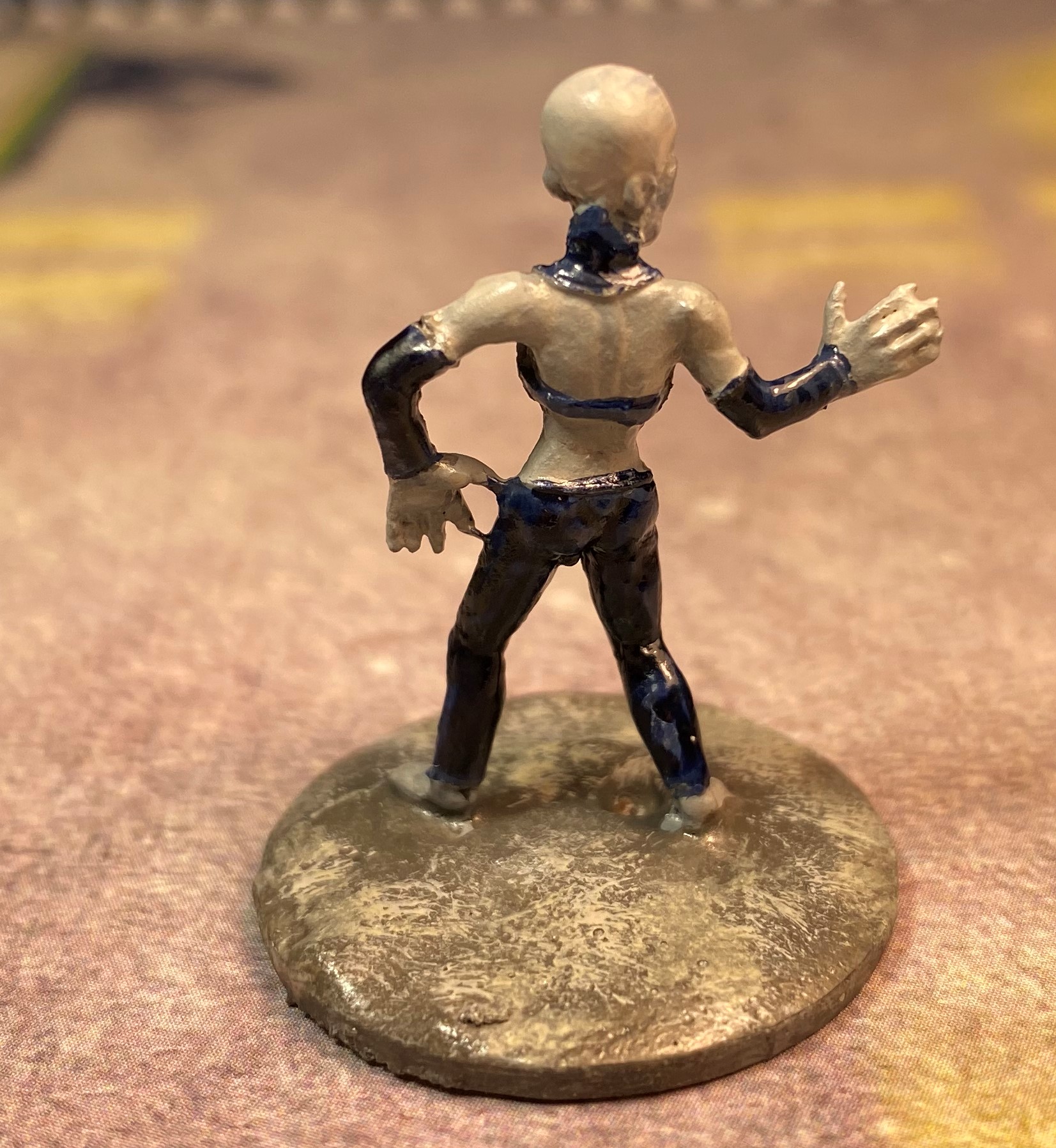 The figure is both easy and difficult to paint. She’s gray wearing dark gray clothing. For the clothing, I chose to use Payne’s Grey, a gray that is almost black with a slightly blue tint. Her gray skin was given a highlight of gray mixed with Reaper’s Maiden Flesh, a very light Caucasian skin tone.