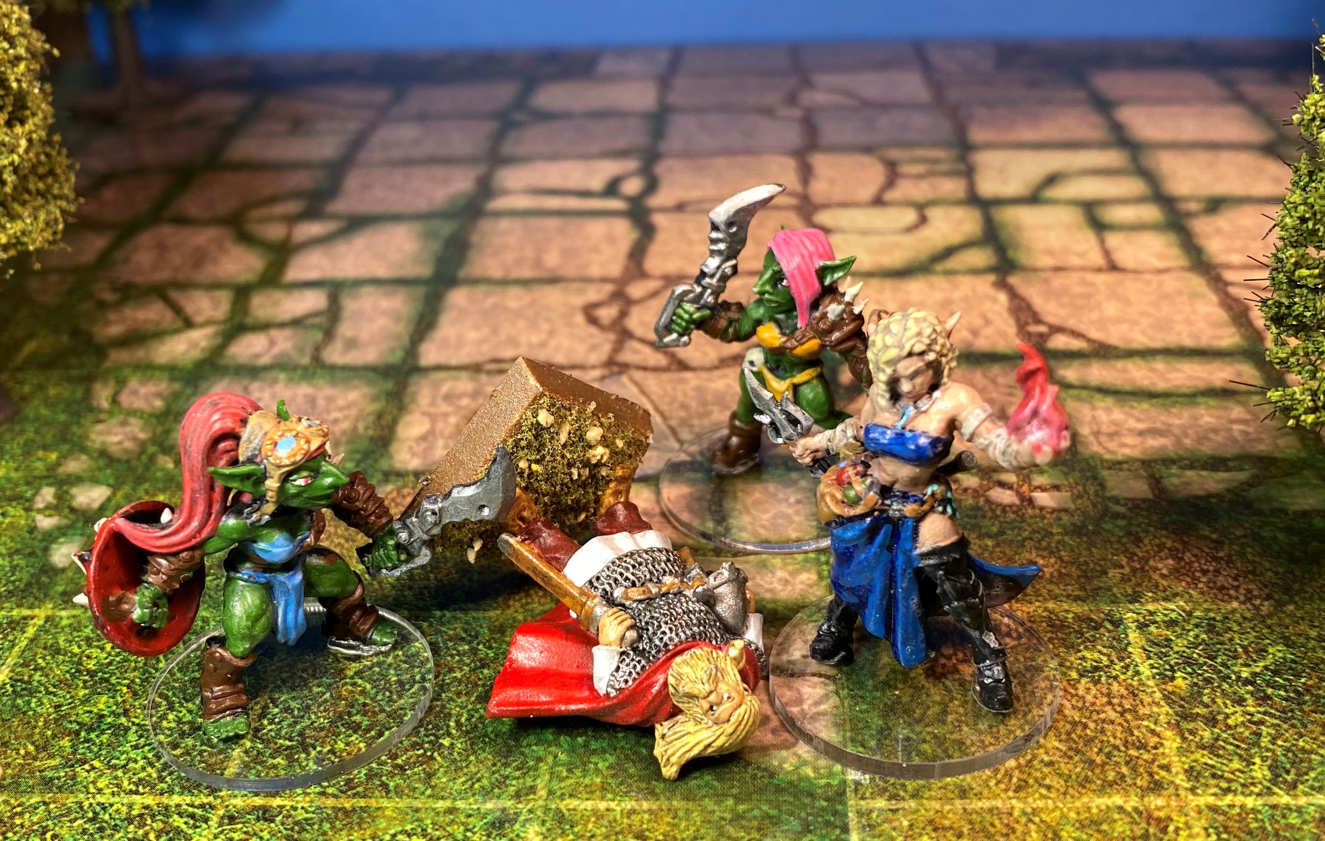 Ok, I might have stacked the combat against the brigands. Perhaps rightly so, I determined the ones occupied in rape would be unarmed. Since their attention was elsewhere, I gave Zhu Paand and the goblins a +1 in the first round of melee for surprising the brigands.