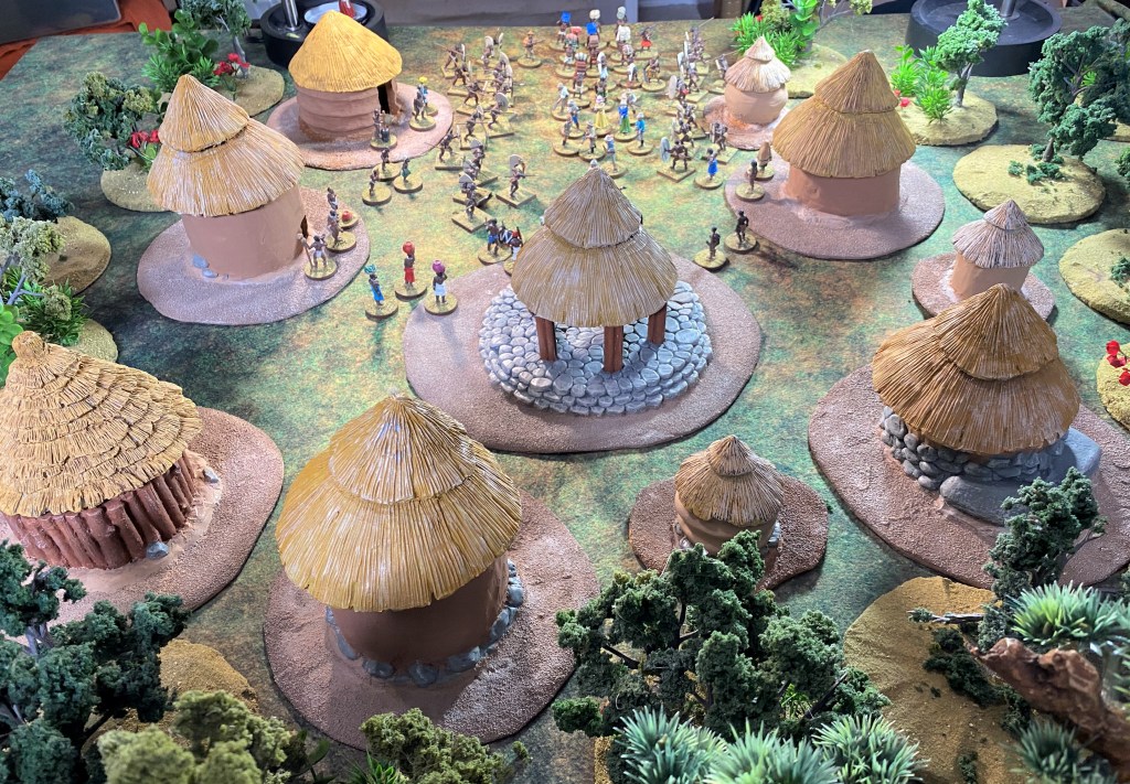 Now that I have them all on the table, it looks like some of the roofs could use a heavier dry brushing to give a little more age to the thatch to match the granaries. What do you think? Your comments and suggestions are always appreciated.