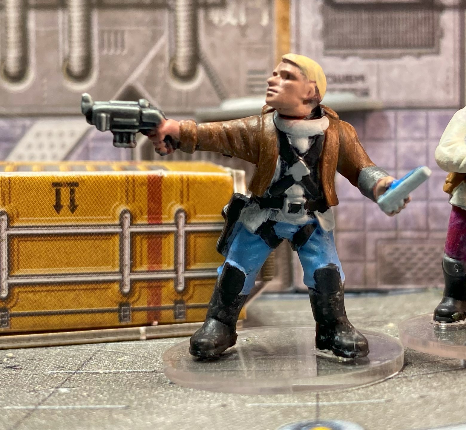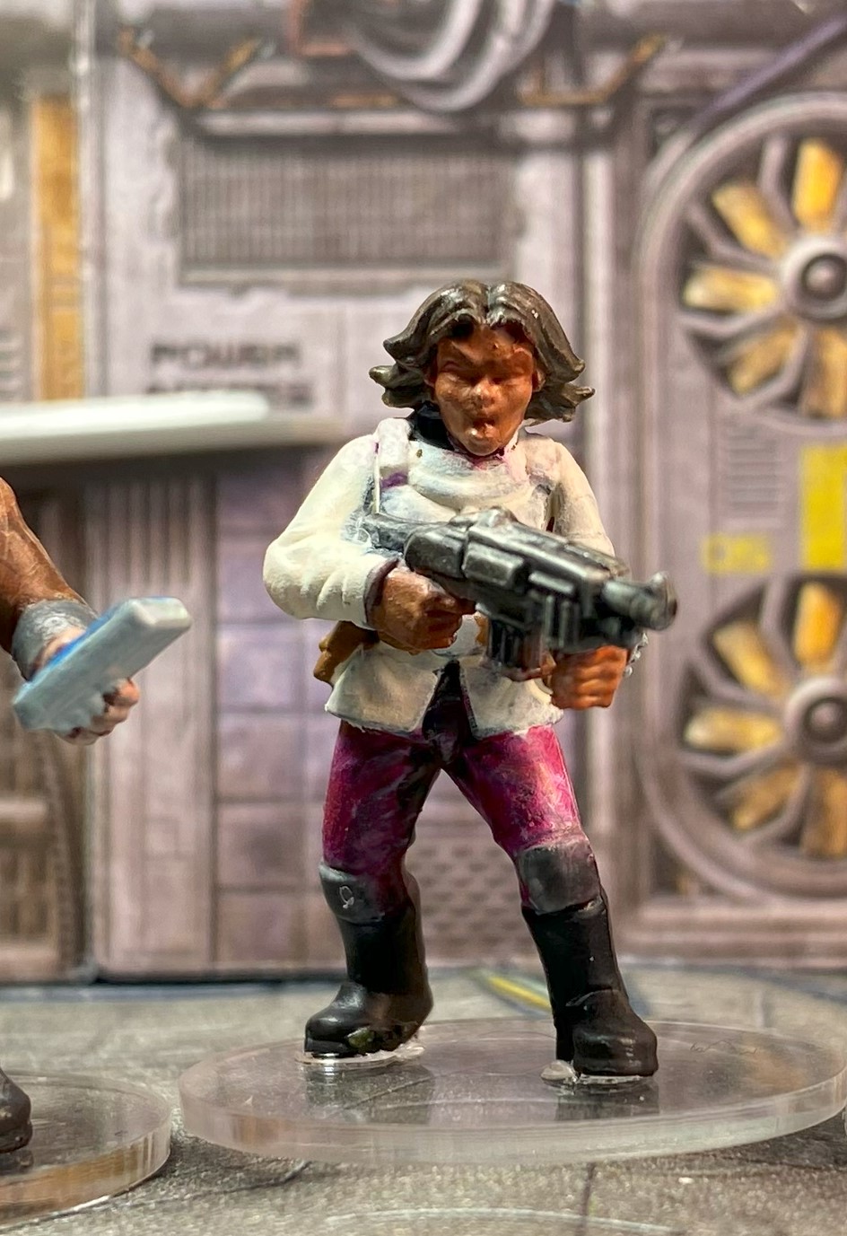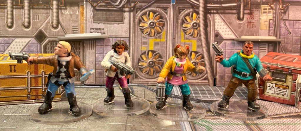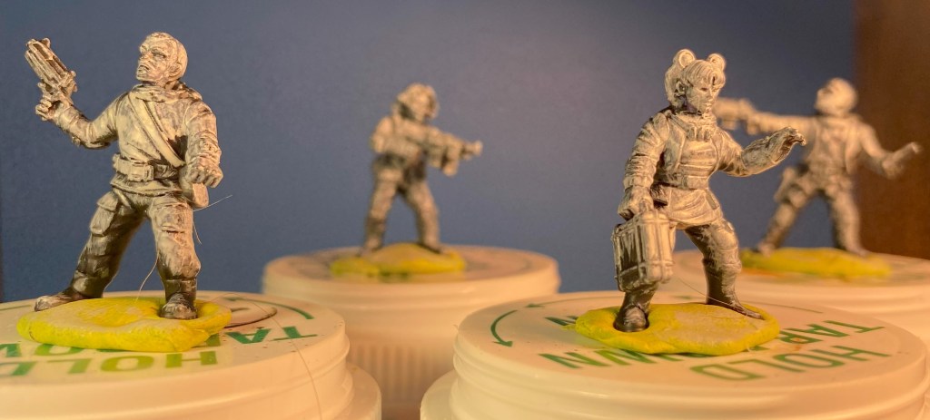 Here’s another photo of her with a few crewmates. The space elf heads on two of the figures are from MadHatModels.