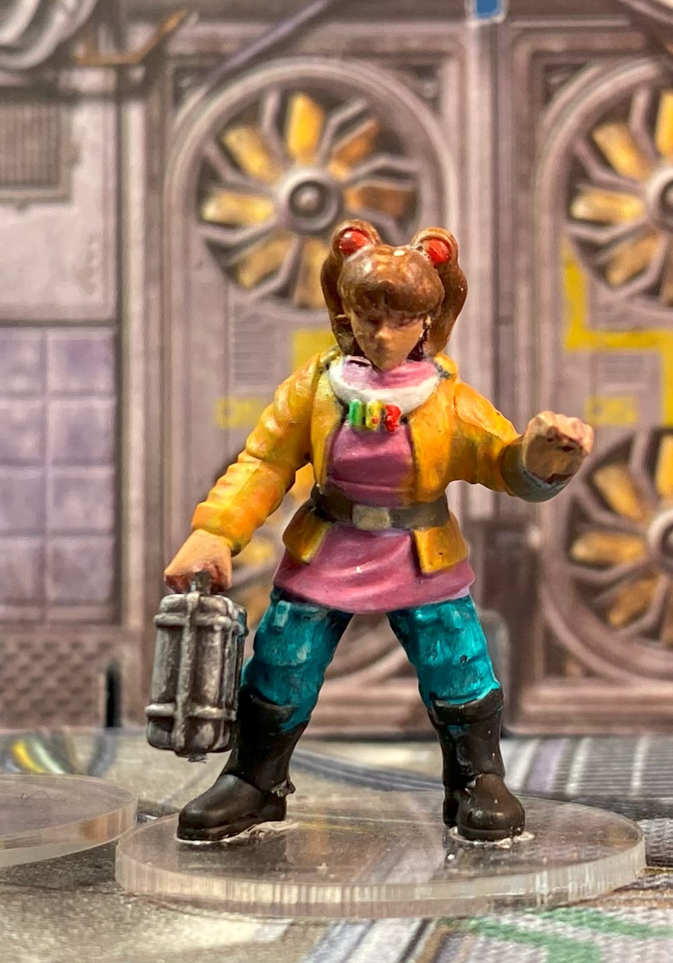 Before I show the other three models painted with space buns girl, I want you to know that I really love these paints. However, like Vallejo, you really have to shake the Dickens out of them before you put them on the palette, especially the oranges and yellows. Honestly, the only downside to these paints is the vigorous amount of shaking required to mix the pigments and binders. Did I say you really, really have to SHAKE these paints each time before putting them on your palette?