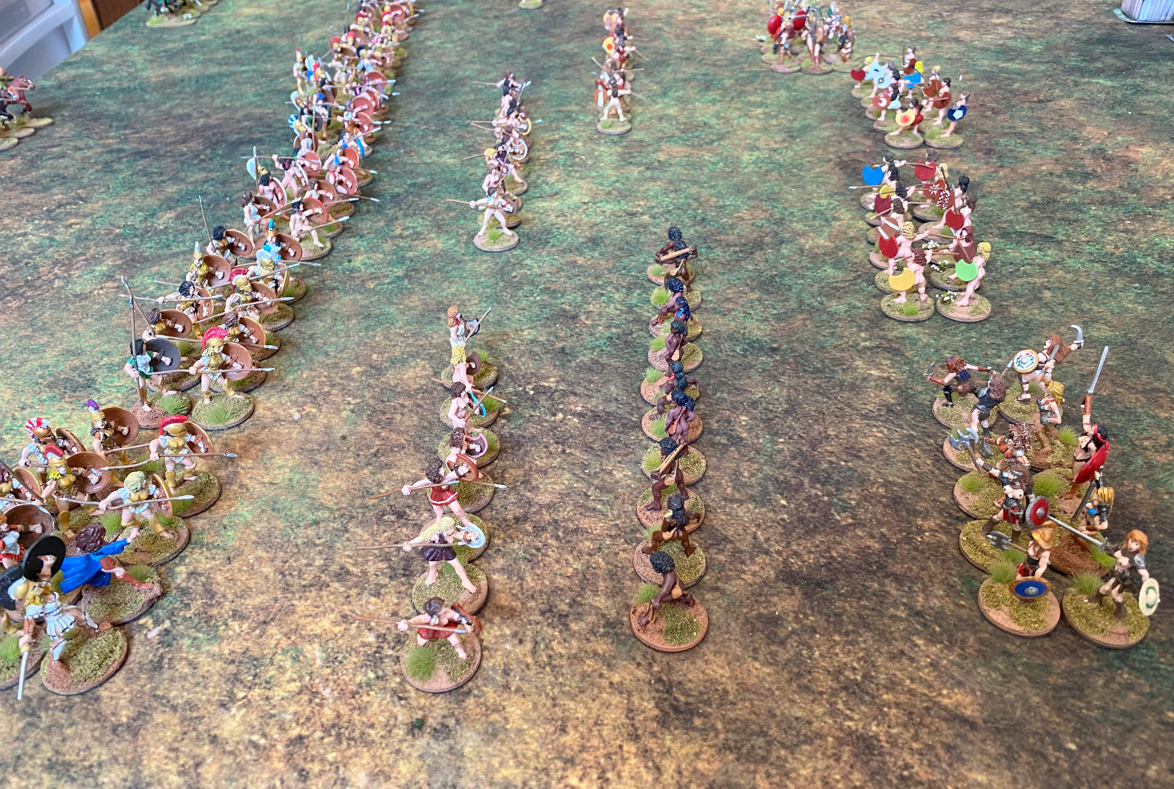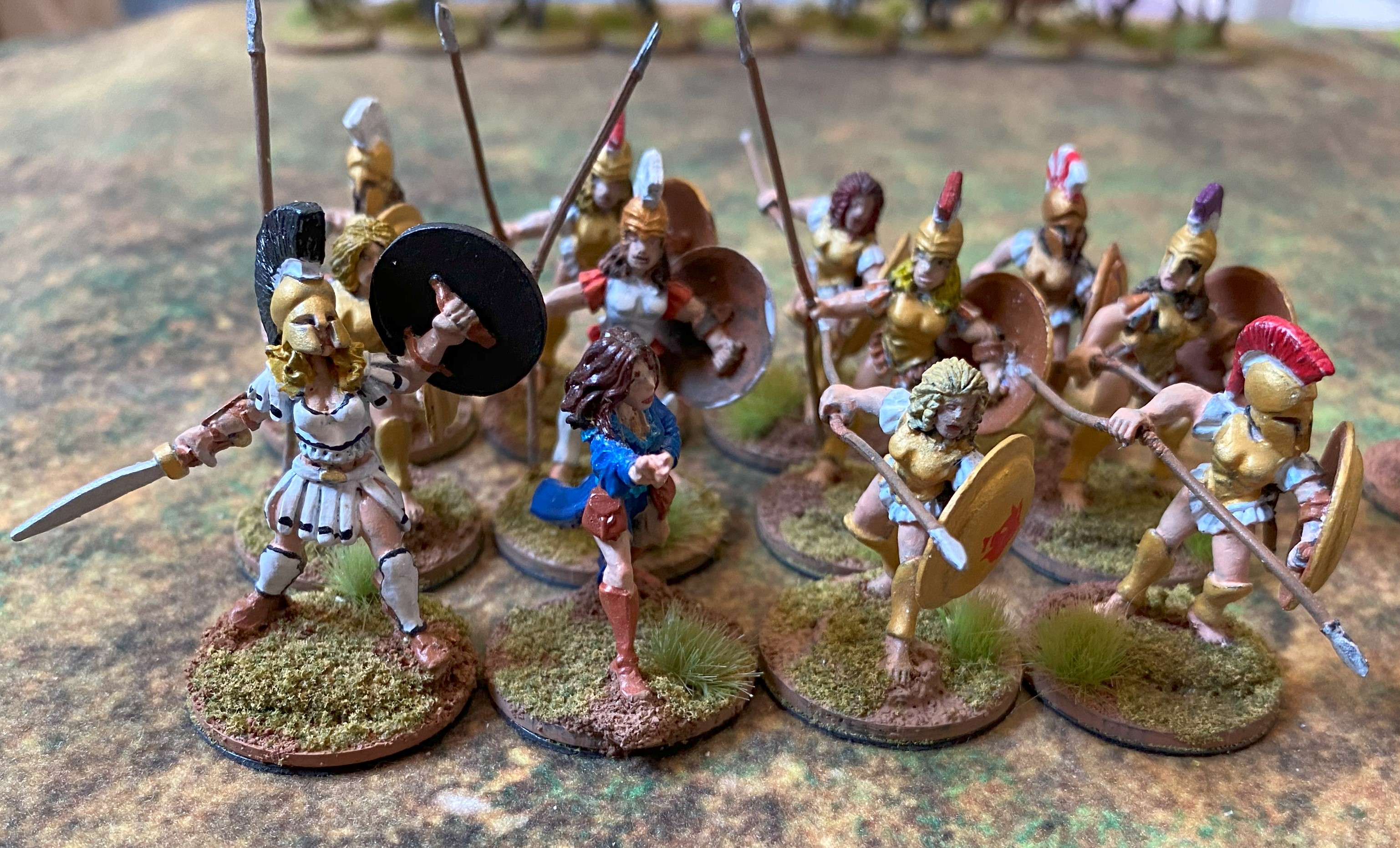 This game of just a few brigades used most of my collection of painted Amazons. If the campaign calls for larger battles, I may have to switch rules to Warrior Heroes To Be King for huge battles.