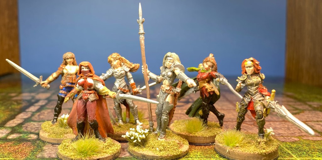 I continue to rebase figures from the old square bases to round ones. These figures are all from Reaper Miniatures.