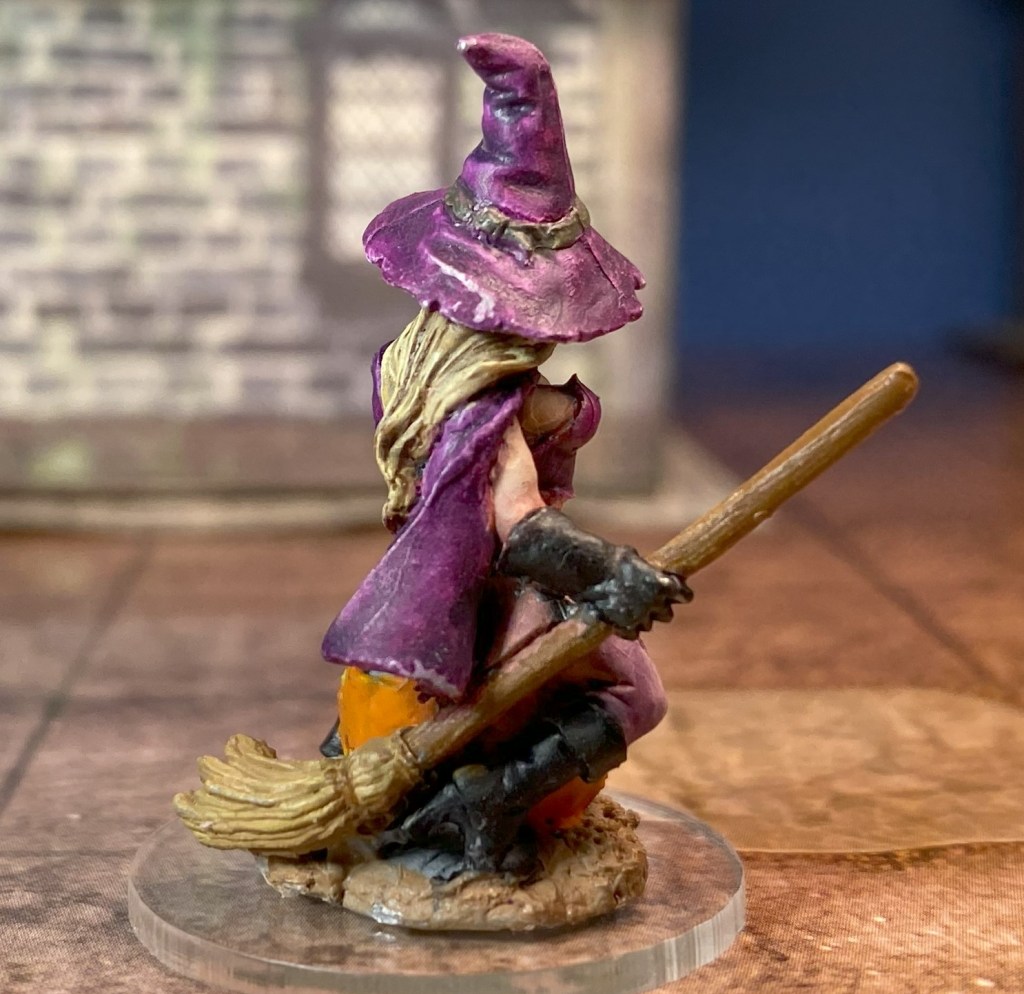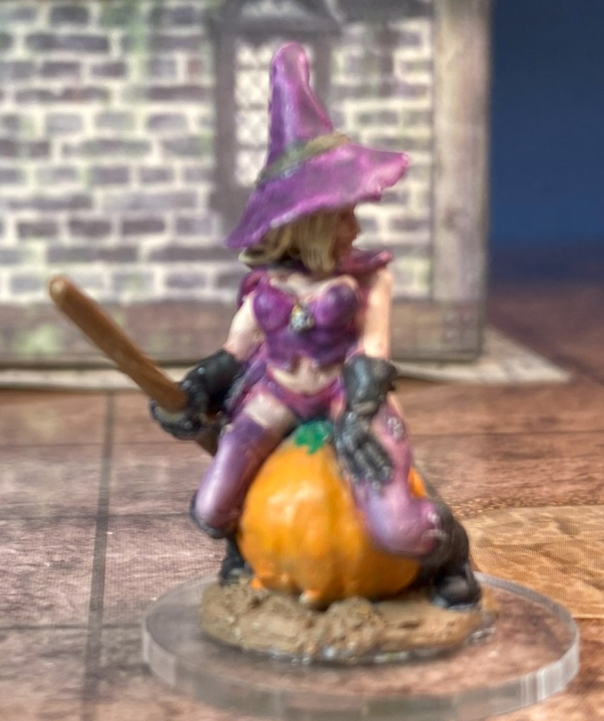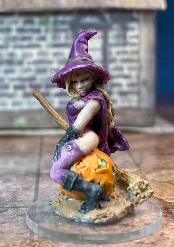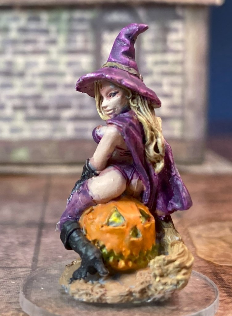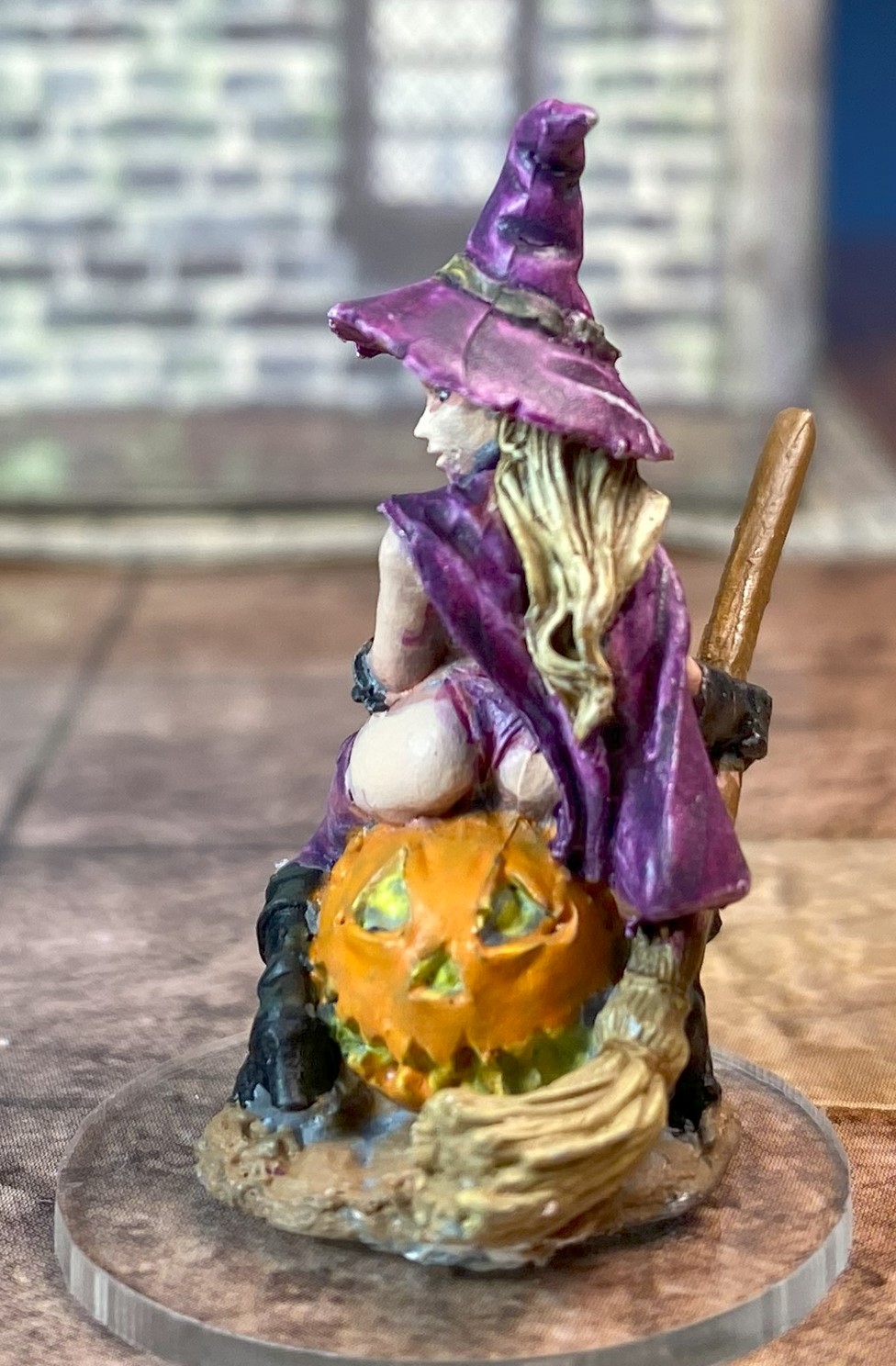 In the meantime, I painted a witch for October, since I didn’t have any orcs to paint this month. She’s a metal Reaper Miniature, but I think she is also available in their Bones plastic line. Everything except the skin & hair was painted using Cuttlefish Colors. The skin and hair were painted with paints from Reaper and Vallejo. (I don’t own the Cuttlefish skin tones and am too lazy to mix paint when I have other paints available.)