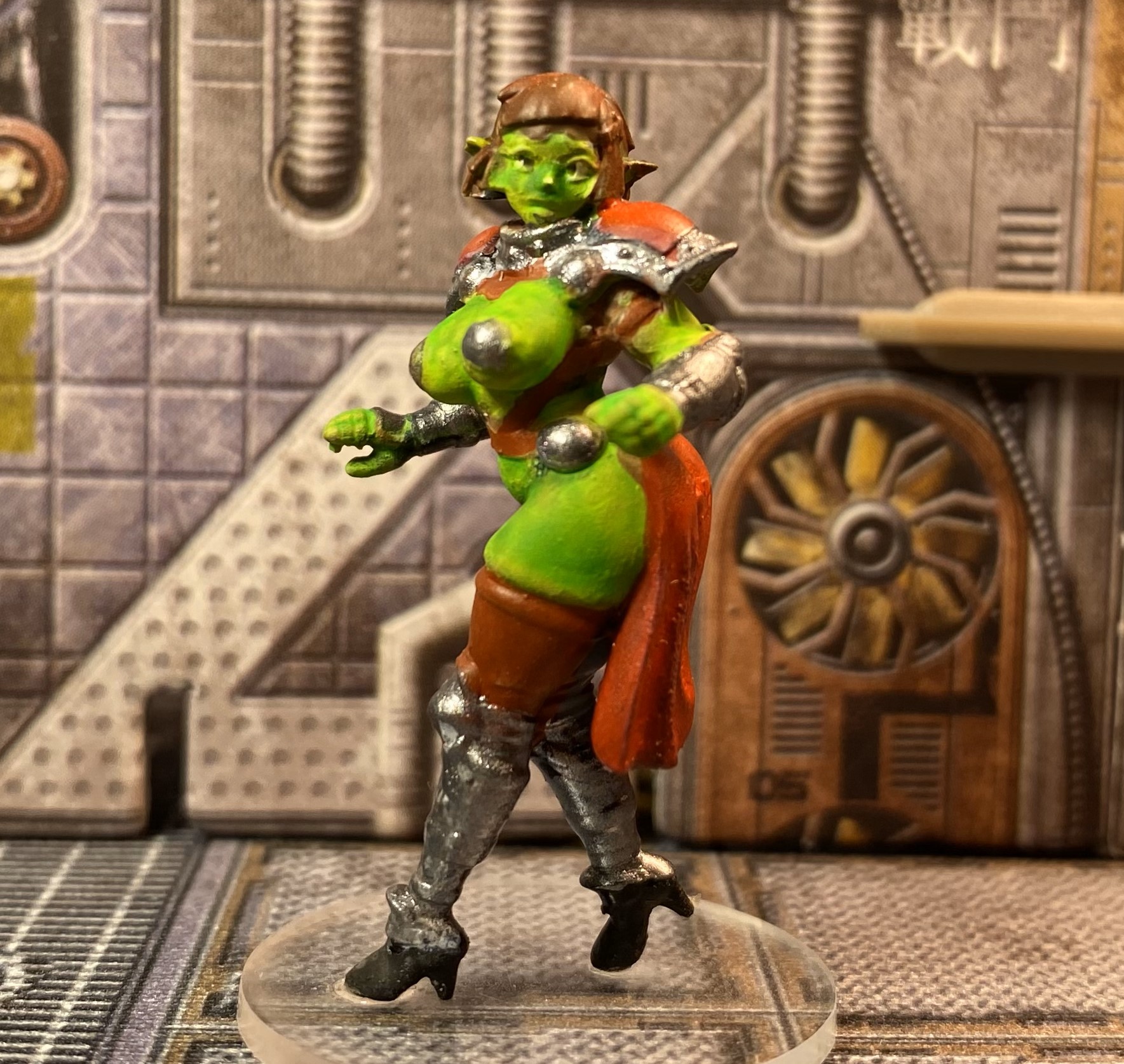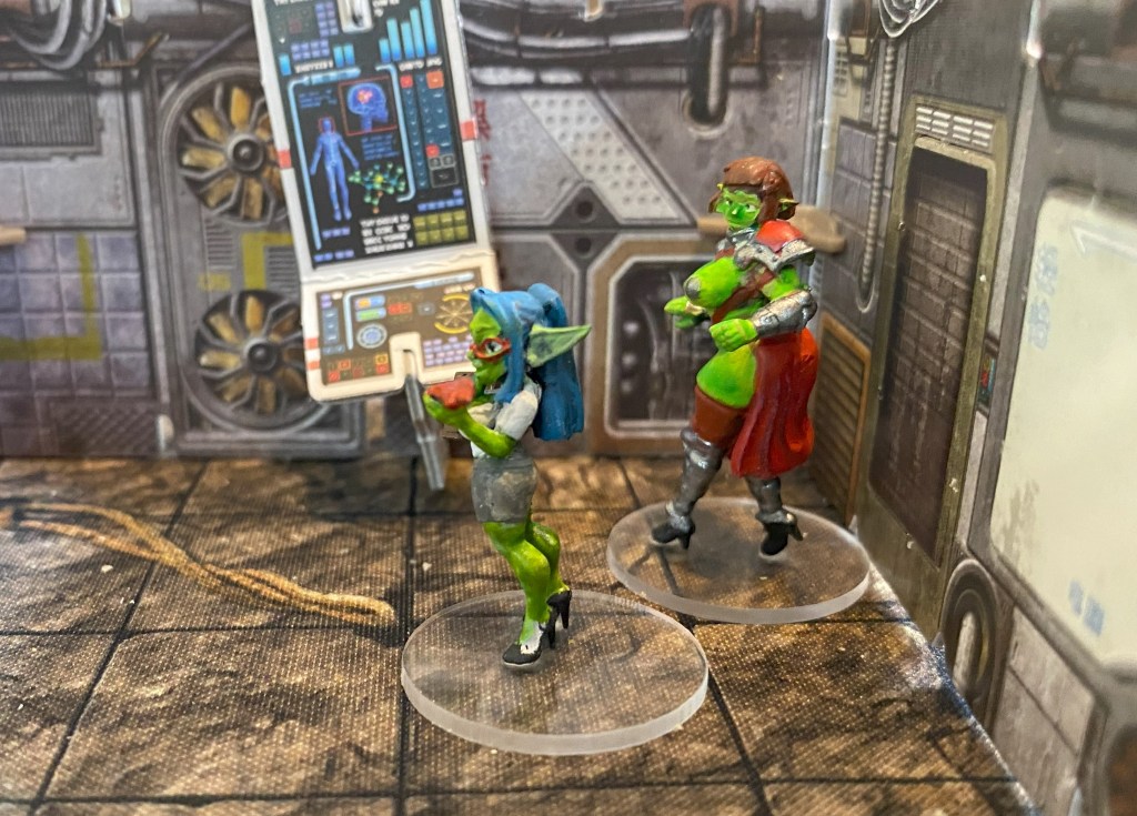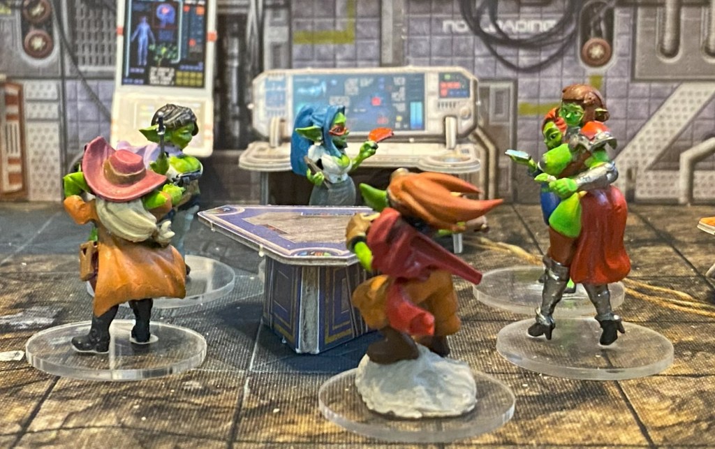 This was my first foray into the game Five Parsecs from Home, which is an “adventure wargame.” I’ll attempt to play a twenty game campaign. What better way to start a new game than with new miniatures. I’ve found some cyberpunk-type goblins from Twin Goddess Miniatures (and painted using Cuttlefish Colors) to use as my crew. To me, the goblins best fit the mutant character type, but I could have also portrayed them as a minor alien species. With a crew made up entirely of mutants meant I had to make a small house rule and allow the Captain and First Officer have the ability to recruit and find Patrons.