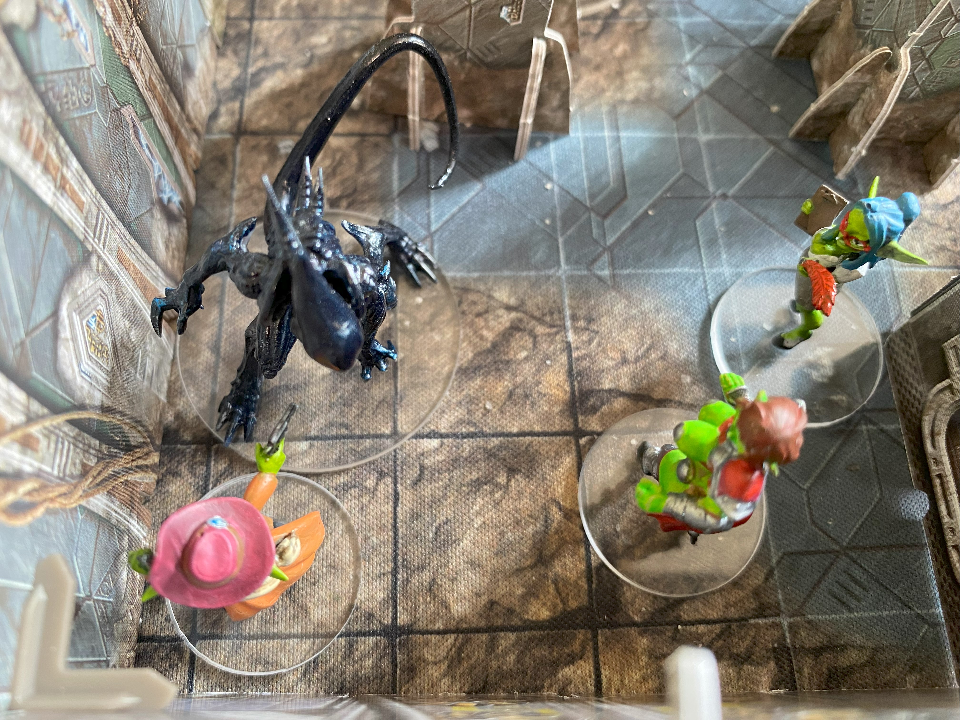 On the other side of the building, Denise and Claire took cover at the entrance to a long room. There was movement and it didn’t take long to realize they were being rushed. Denise fired and hit the lead creature, but it only stunned the creature into stopping for a moment.