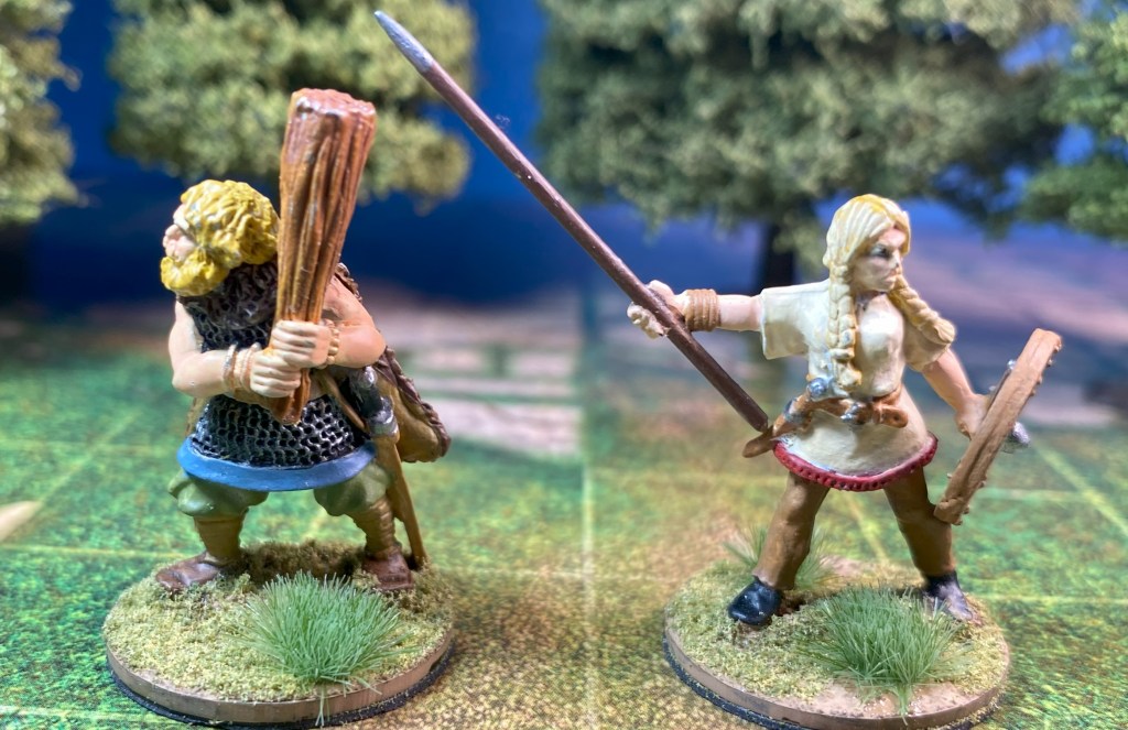 Wargamers tend to categorize any unarmored Viking warrior as being of the Bondi class. The Bondi were typically farmers who were part time warriors. These figures are from Artizan Design.
