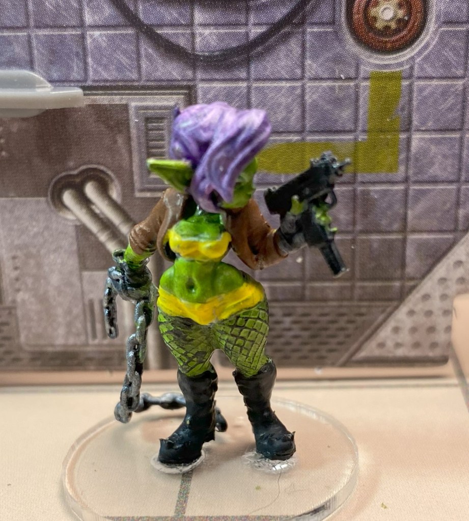 A few months ago, I found these adorable goblins from Twin Goddess Miniatures on Etsy and just had to buy them. They’re not your typical fantasy goblins, this one is a Cyberpunk badass.