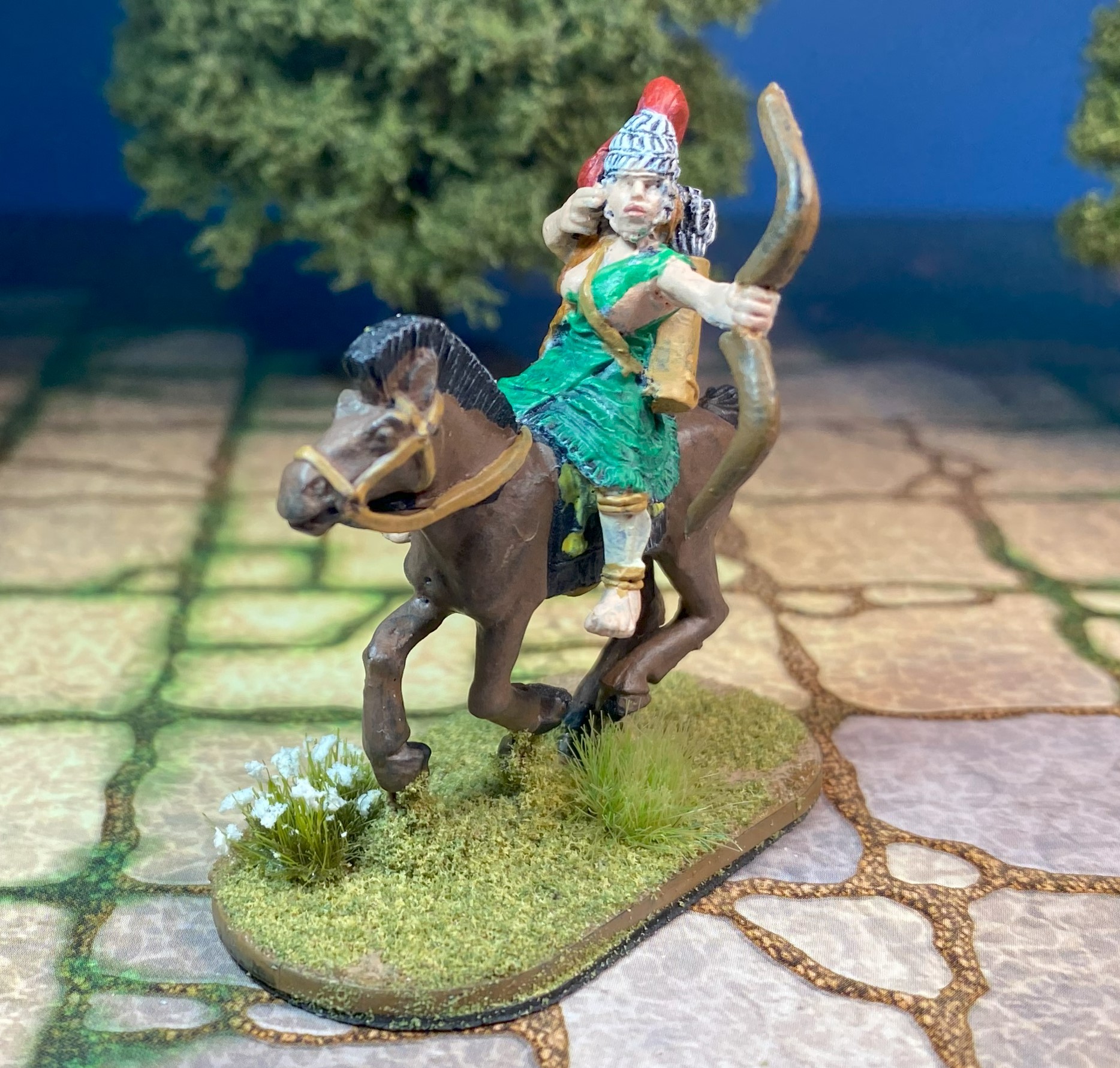 I’m bad when it comes to painting cavalry. I get bored and put the figure away to finish later, sometimes years later. This figure is from Casting Room Miniatures, an off shoot of Wargames Foundry. These Amazons catch the feel of the Late Bronze age, but the proportions are off on some of the figures with an arm or neck being too long.