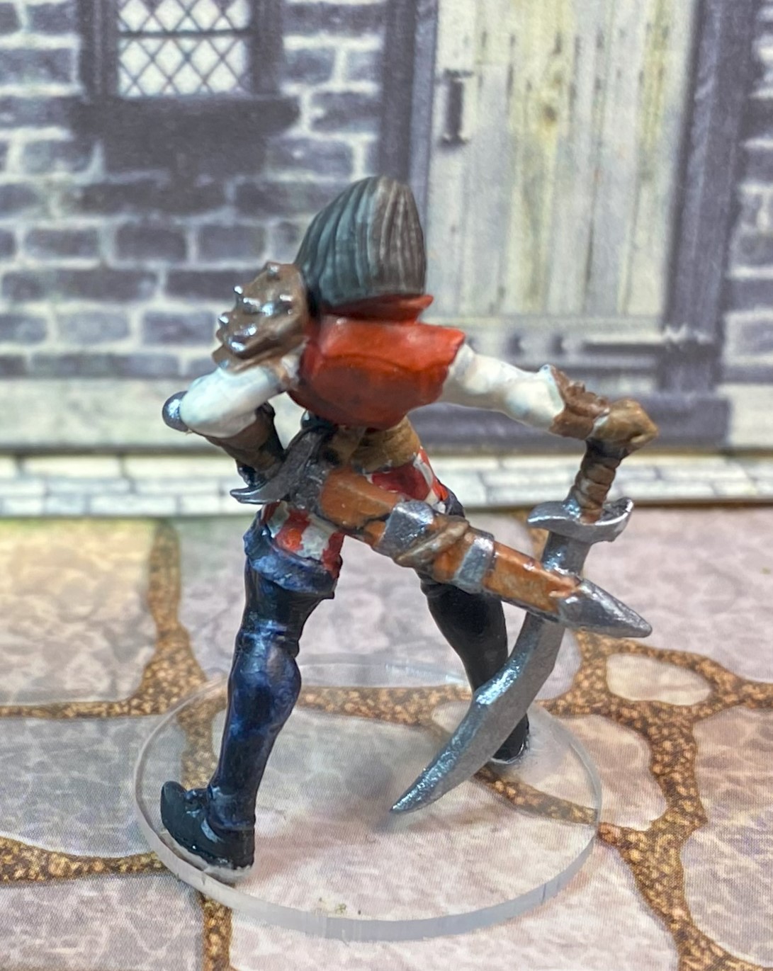 This swashbuckler can be purchased with different weapon options. I chose the one with two swords. The figure is from Artisan Guild.