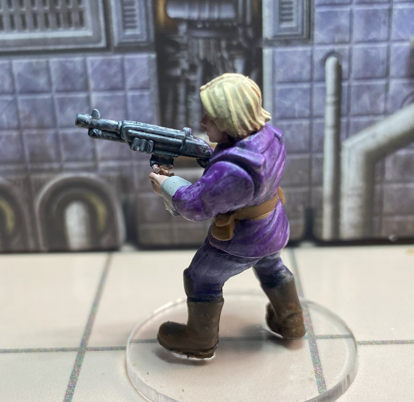At the start of last year, I think it was the start of last year (at my age years are beginning to run together), I purchased the Stargrave Crew and Stargrave Crew 2 boxed sets from North Star. Each set contains twenty figures, the Crew box has 20 male figures and Crew 2 has 20 female. These figures are not only great for use in Stargrave, but also 5150 New Beginnings and Five Parsecs from home. This one is number ten of the Crew 2 set.