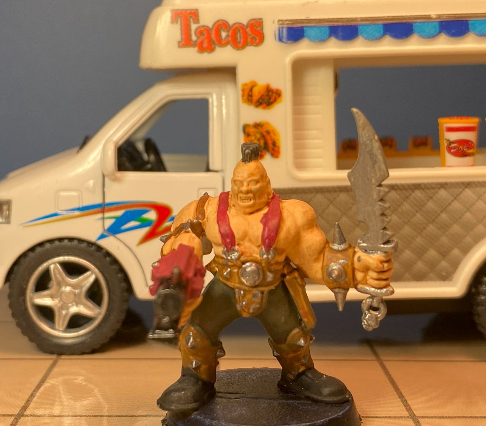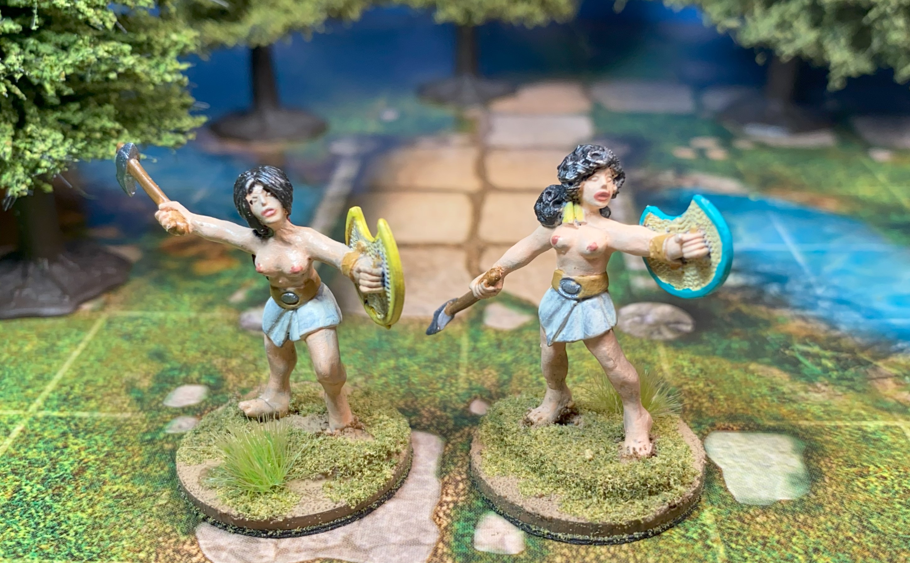 1) As usual, I find myself admiring how well you paint lips. I use a Micron 005 pen and barely achieve mediocrity on my better days. 2) Ganger knife. I once read that French WWI sappers used a bayonet with a knife blade on one side and a saw blade on the other–sort of Swiss army knife like. The Germans, thinking about how unpleasant it would be to be stabbed with such a weapon, sometimes executed men found carrying these knives. This German attitude of fear and hatred of such weapons might apply to the people who have to deal with your gangers. 3) Who makes the tufts with the white flowers on the bases of some of your Amazons? I’m painting Hera, and lilies were her flower.