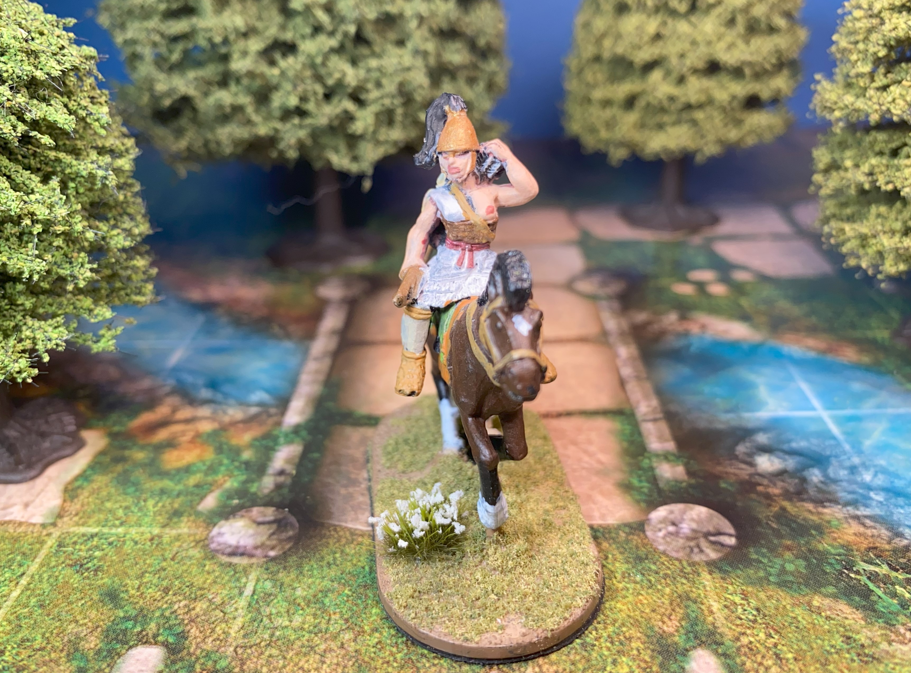 A mounted Amazpn from Castaway Miniatures of Wargames Foundry.