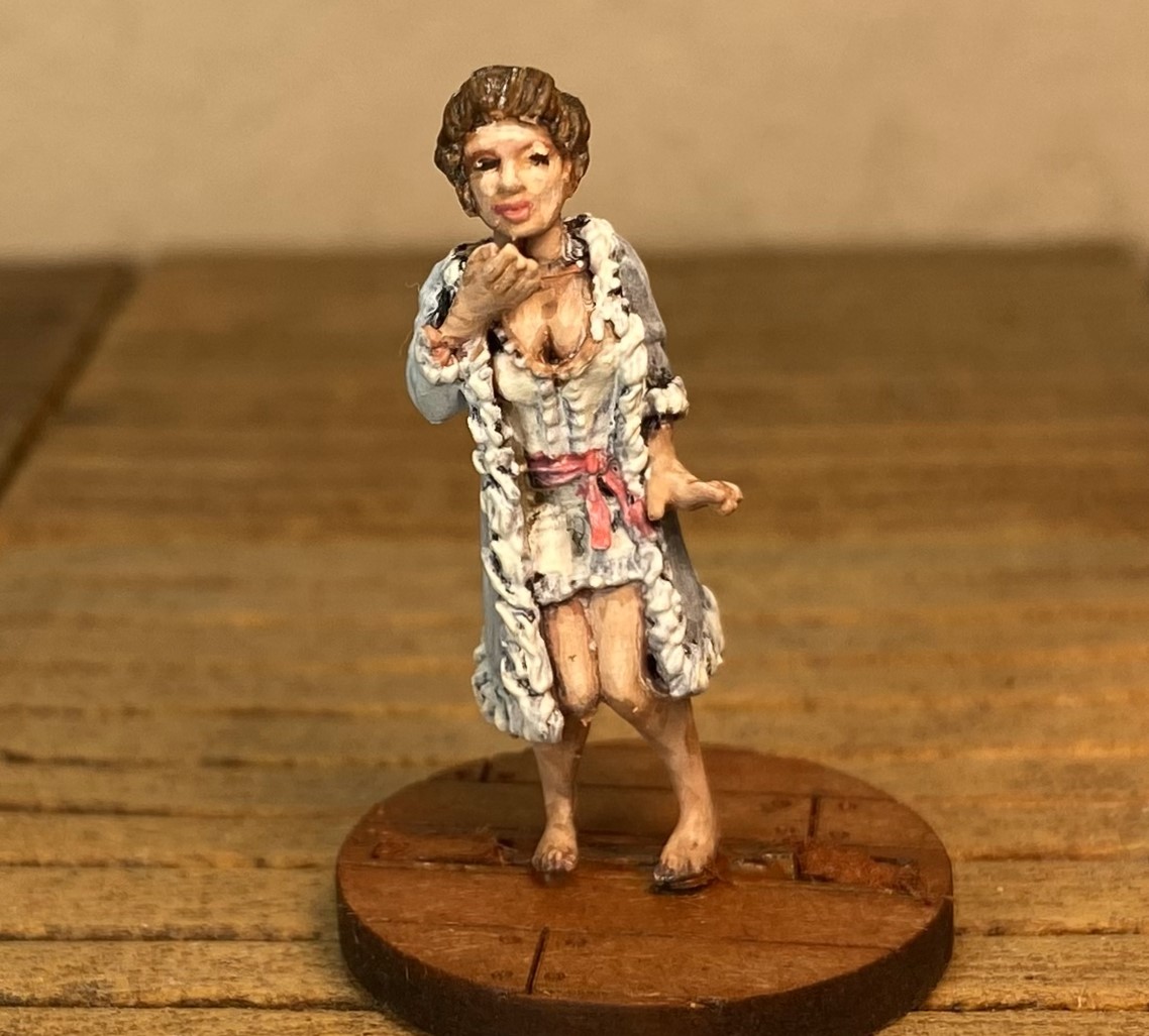 The miniature labeled as “Belle Ringer” could be used to represent any of the many soiled doves who worked in the “cribs” behind saloons and gentlemen’s clubs. These ladies often lived short hard lives unless they managed to find a way out of the “crib”.