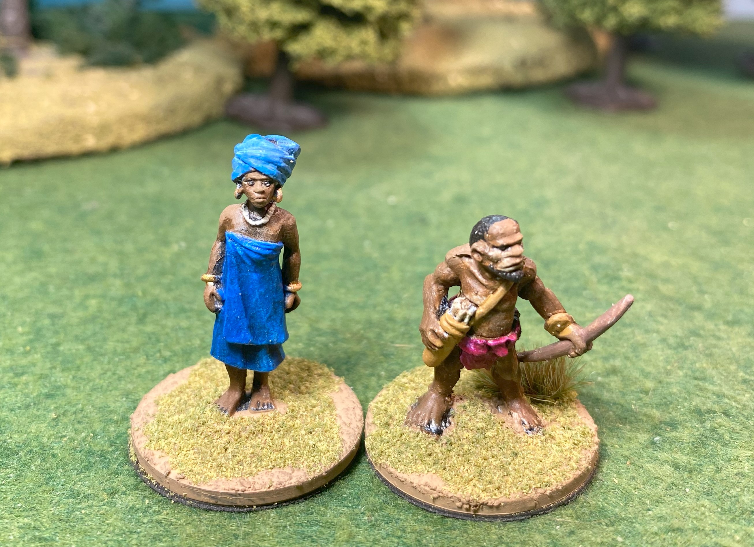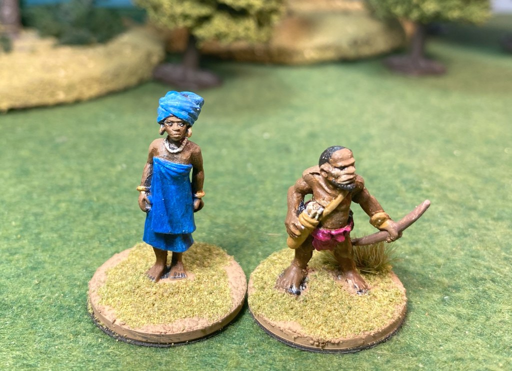 The figures are from Wargame Foundry’s Darkest Africa range and were sculpted by Mark Copplestone.