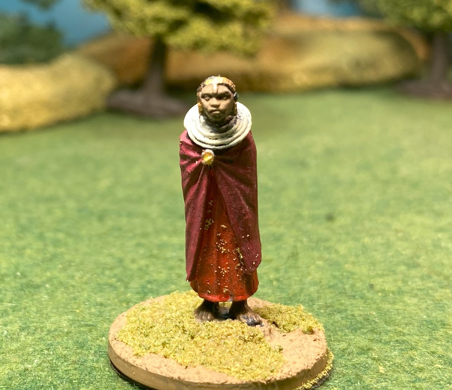 Red is the dominant color among the Maasai and in painting the princess, the hard part was choosing colors of red that were similar, but also could be differentiated on the tabletop.