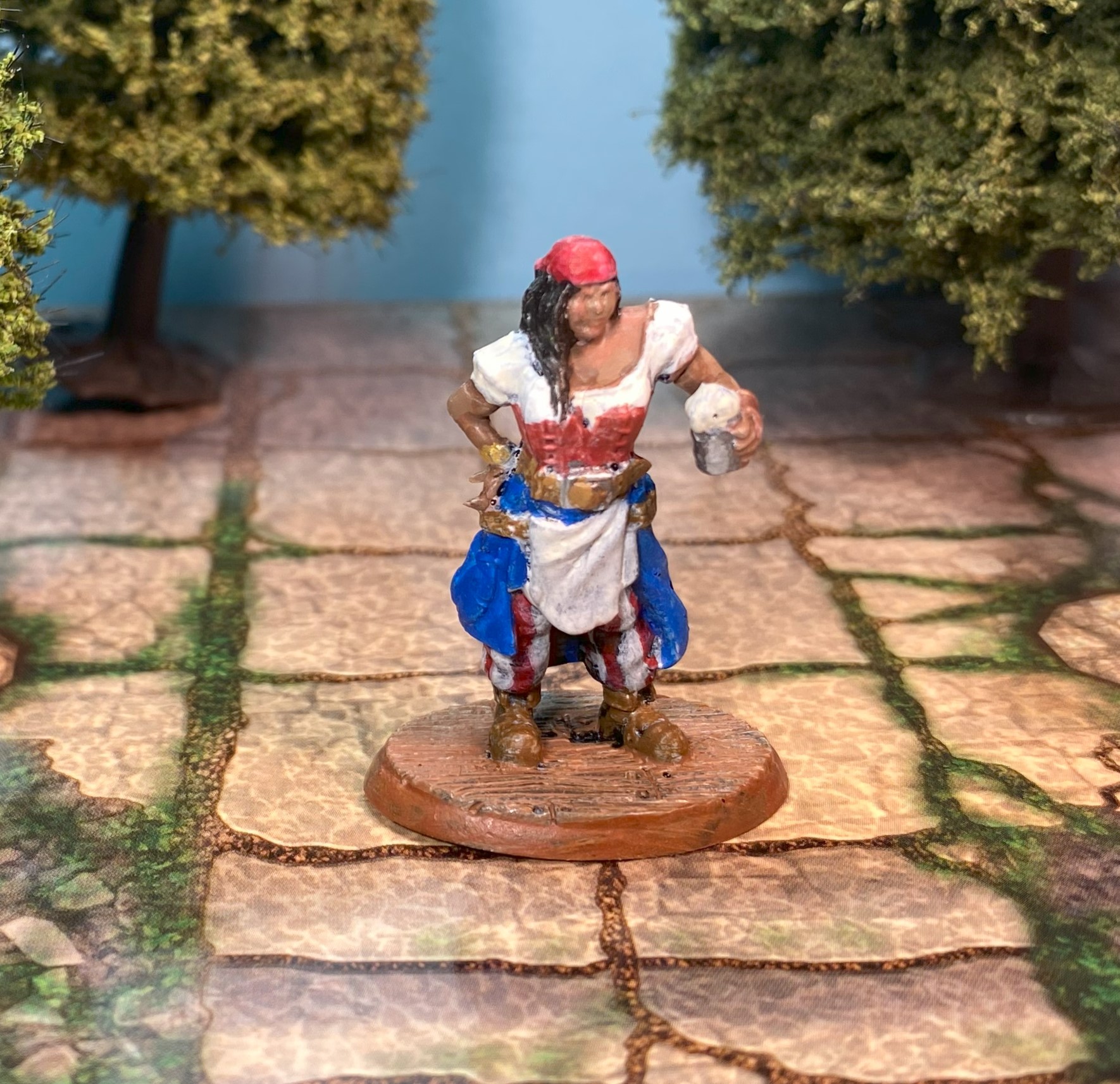 I think this figure was a limited-edition resin print since she doesn’t appear in Reaper’s catalog. She’s a big woman closer to 32mm than 28mm in scale. Not only can she be used as an innkeeper, she would also make a good bouncer.