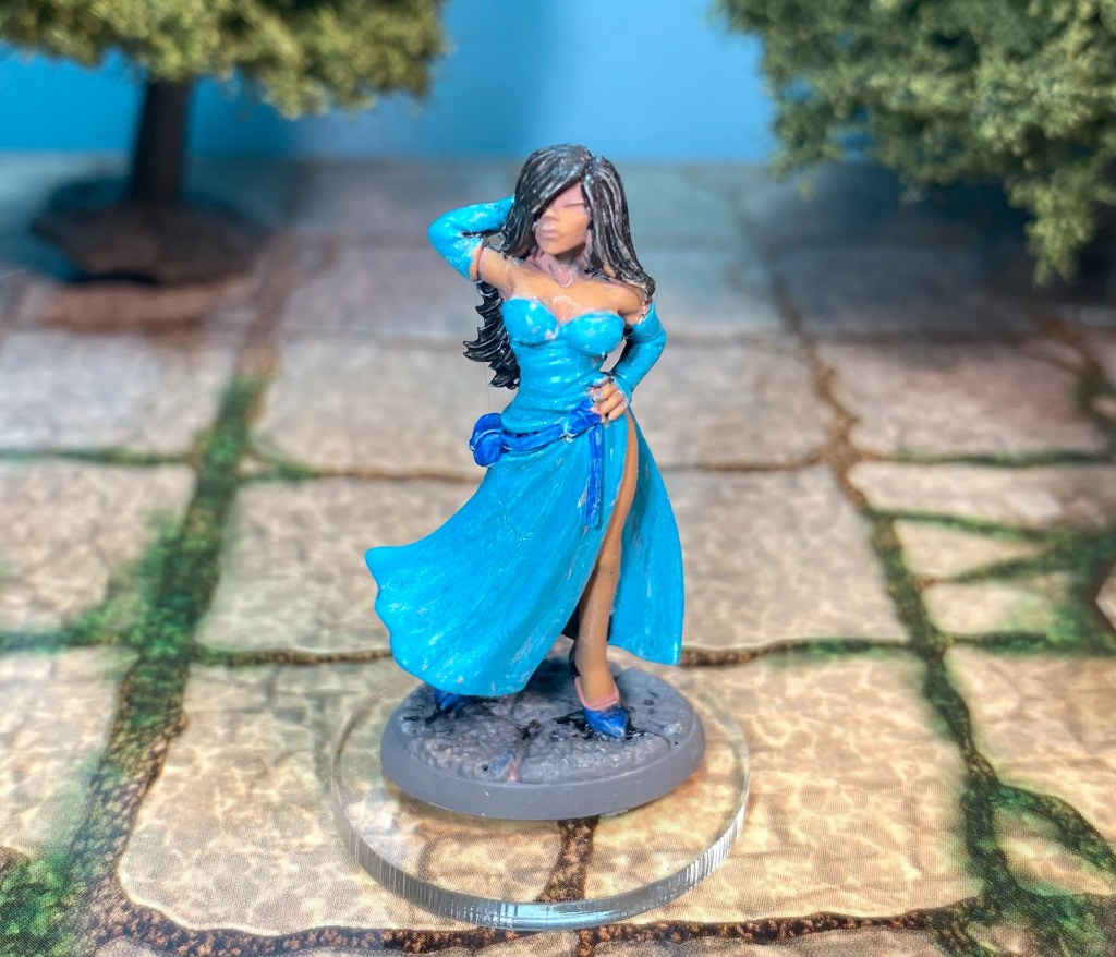 You can never have too many NPCs for a WHAT encounter, especially the carousing encounter. This Courtesan is one of two from the Townsfolk: Cortesans (2) pack from the Reaper Legends Bones range. I’ve gotten to where I paint more and more figures with darker skin tones. This may be a subconscious protest against C.S. Lewis and fundamental Christians. I know Lewis was a friend of Tolkien and wrote the Chronicles of Narnia among other works. One of his books, which I found a bit offensive was Pilgrim’s Regress wherein the character discovers Lust in the form of “brown girls”. This has always seemed racist to me in that in many Christian allegories, sin and temptation always takes the form of people of color. I’m probably way off base, but I feel there needs to be more diversity in my miniature games.