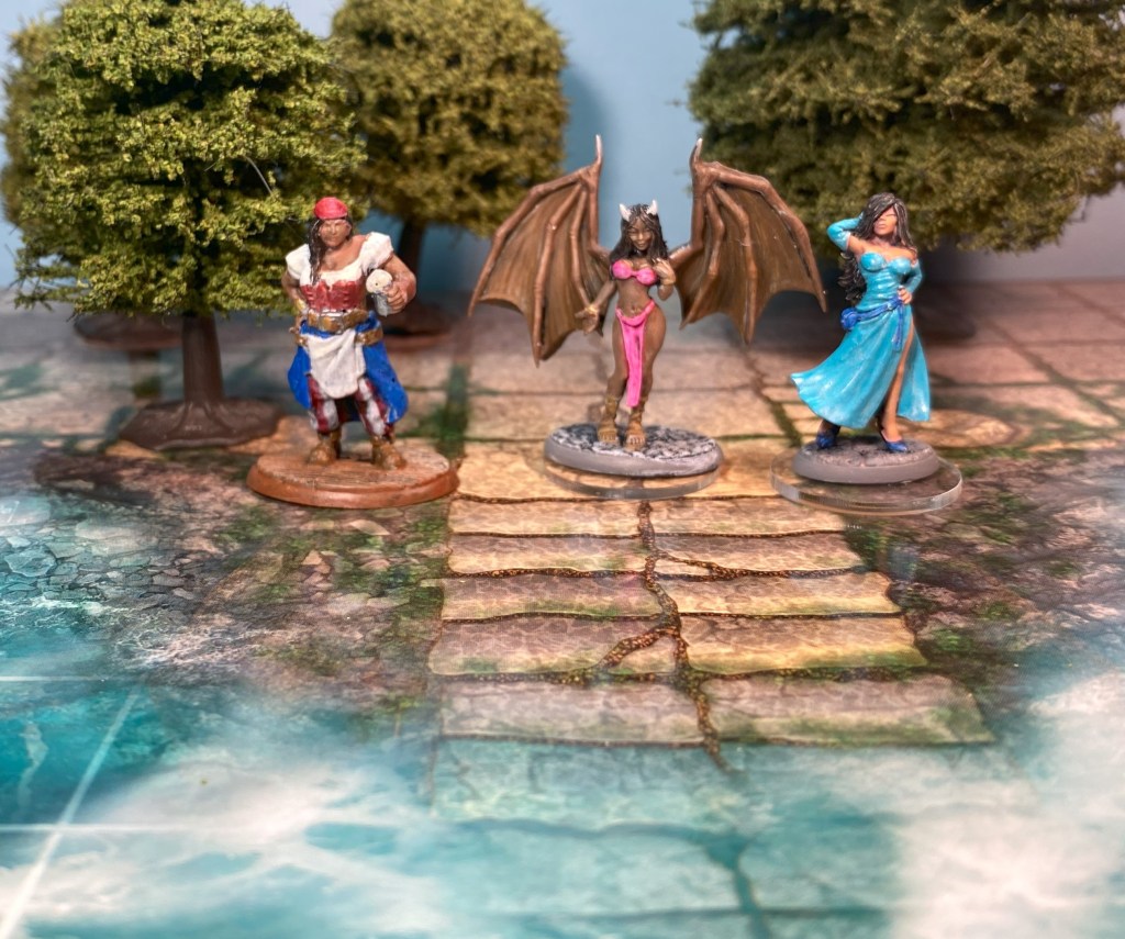 I managed to finish three fantasy figures this week, all from the various Reaper Bones ranges: a courtesan from a Townsfolk pack, the innkeeper of Brinewind (a pirate city), and Tirika, a succubus demon.