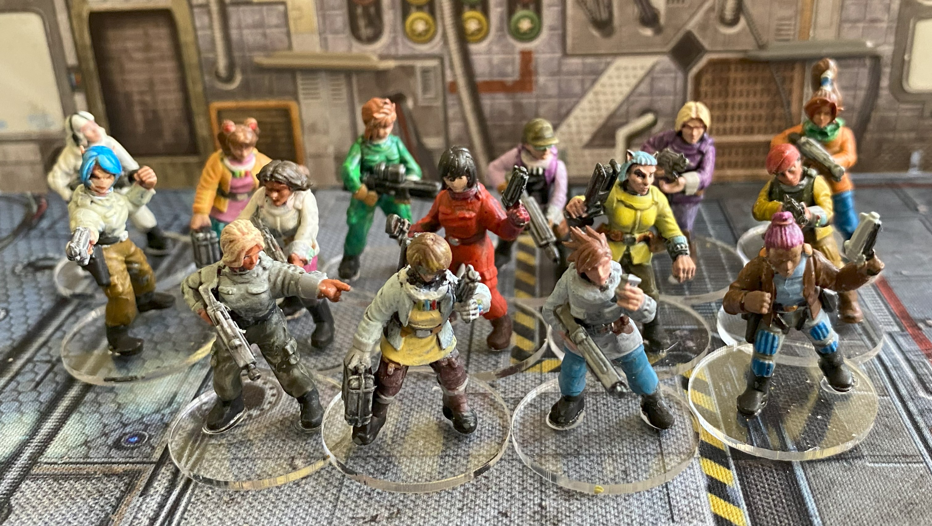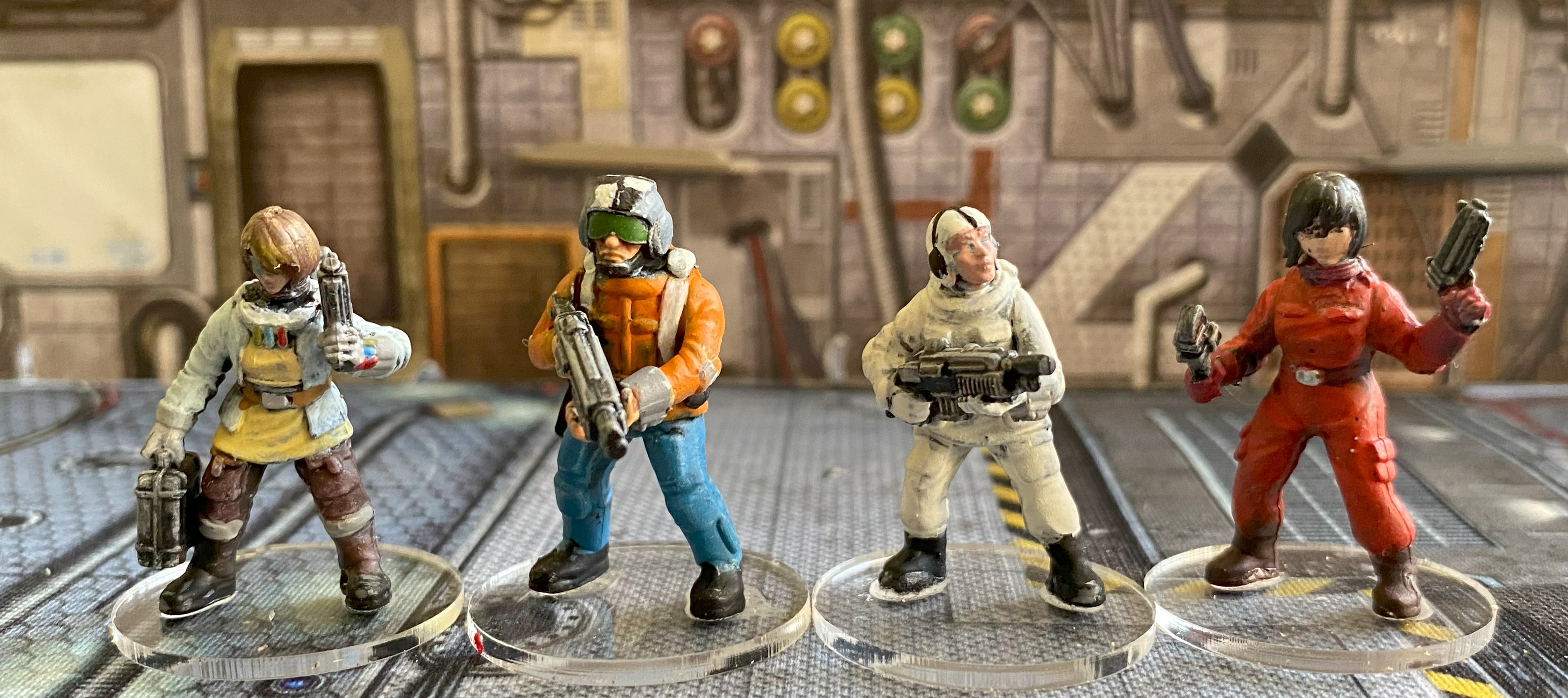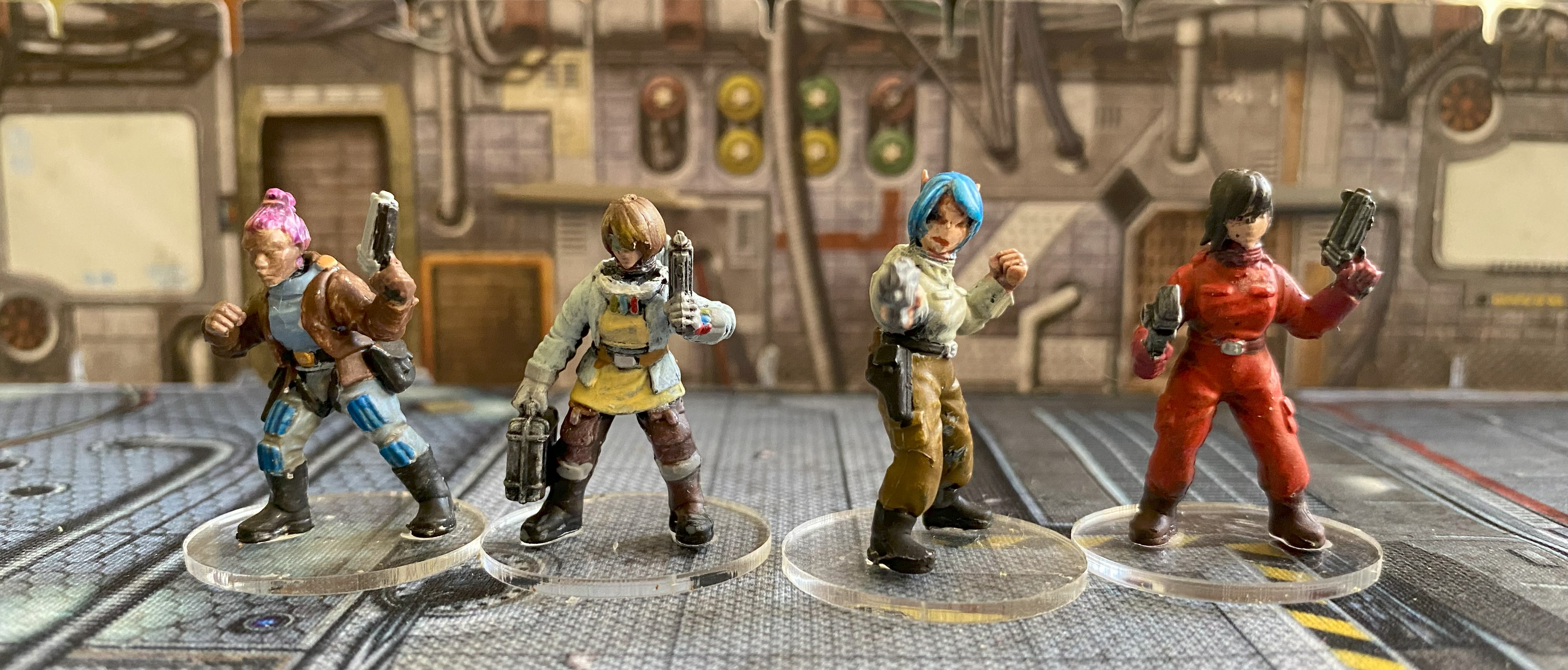 I decided when I wrote this piece that I didn’t have suitable figures for Della Street and Fu Yin, so I painted four more figures from the Stargrave Crew sets from North Star Military Figures.