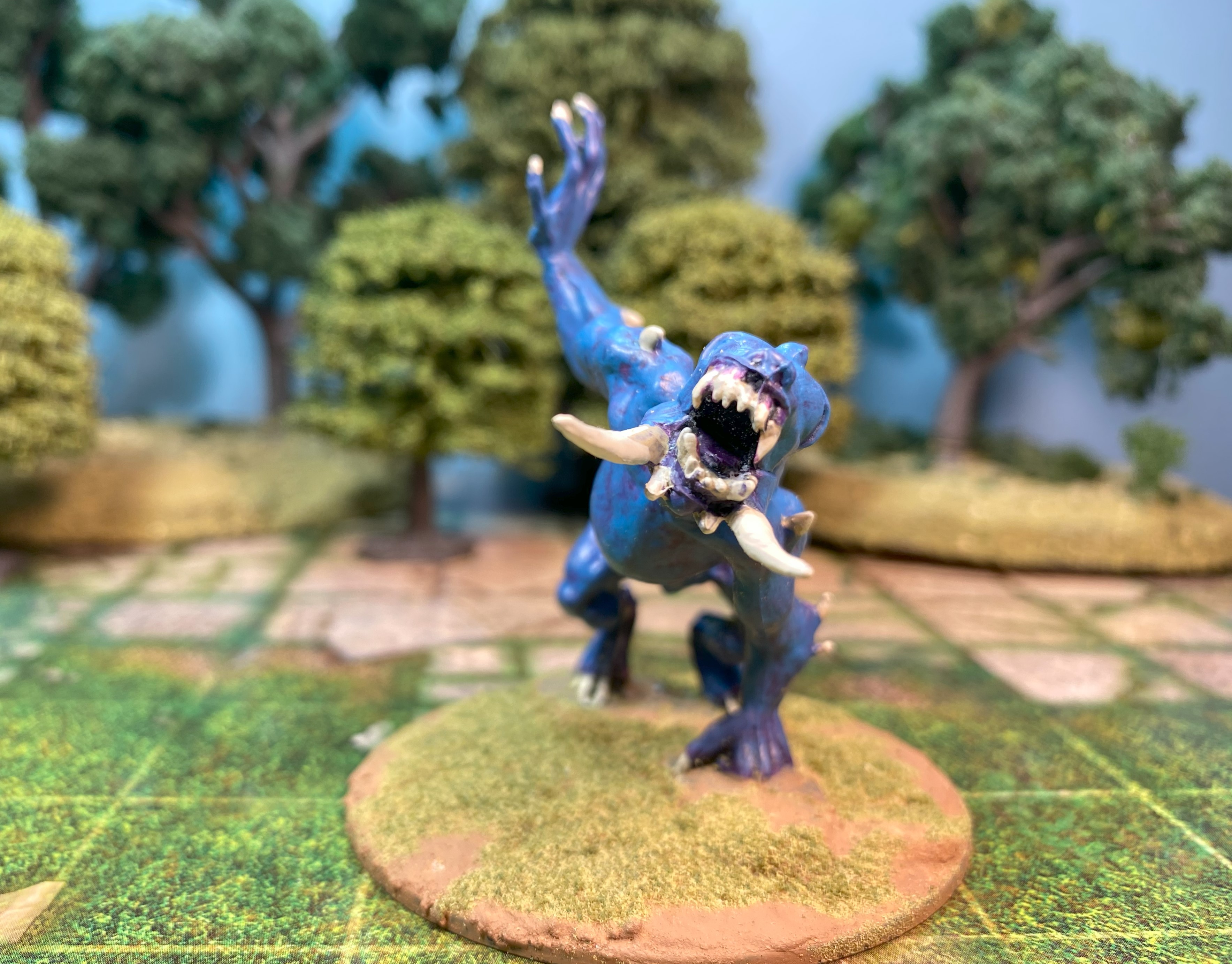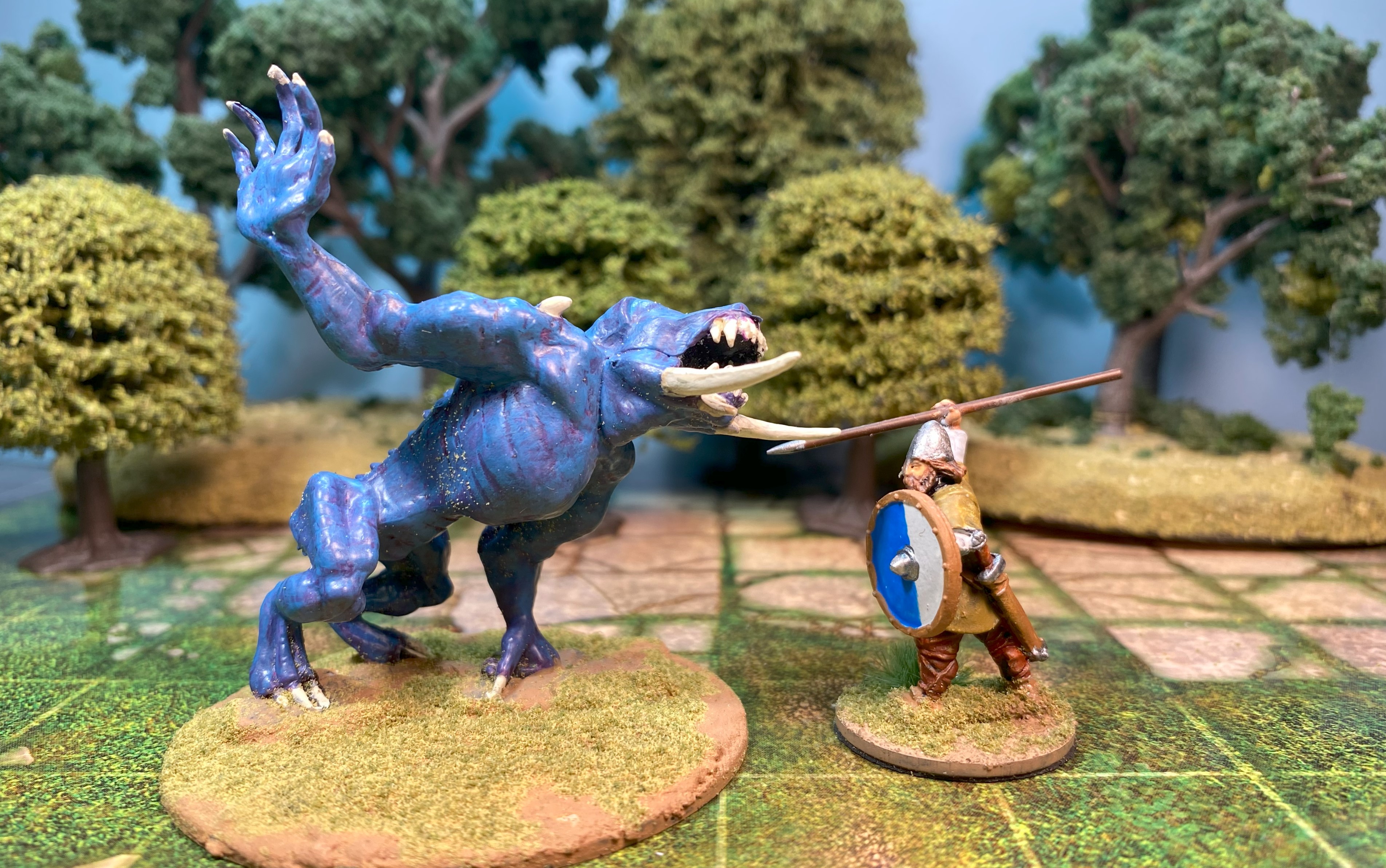 For a short while, Reaper Miniatures produced a few miniatures for the Nemenara role playing game. The monsters are strange creatures, and I decided one of them, the Ravage Bear, would be a good Brunnmigi.