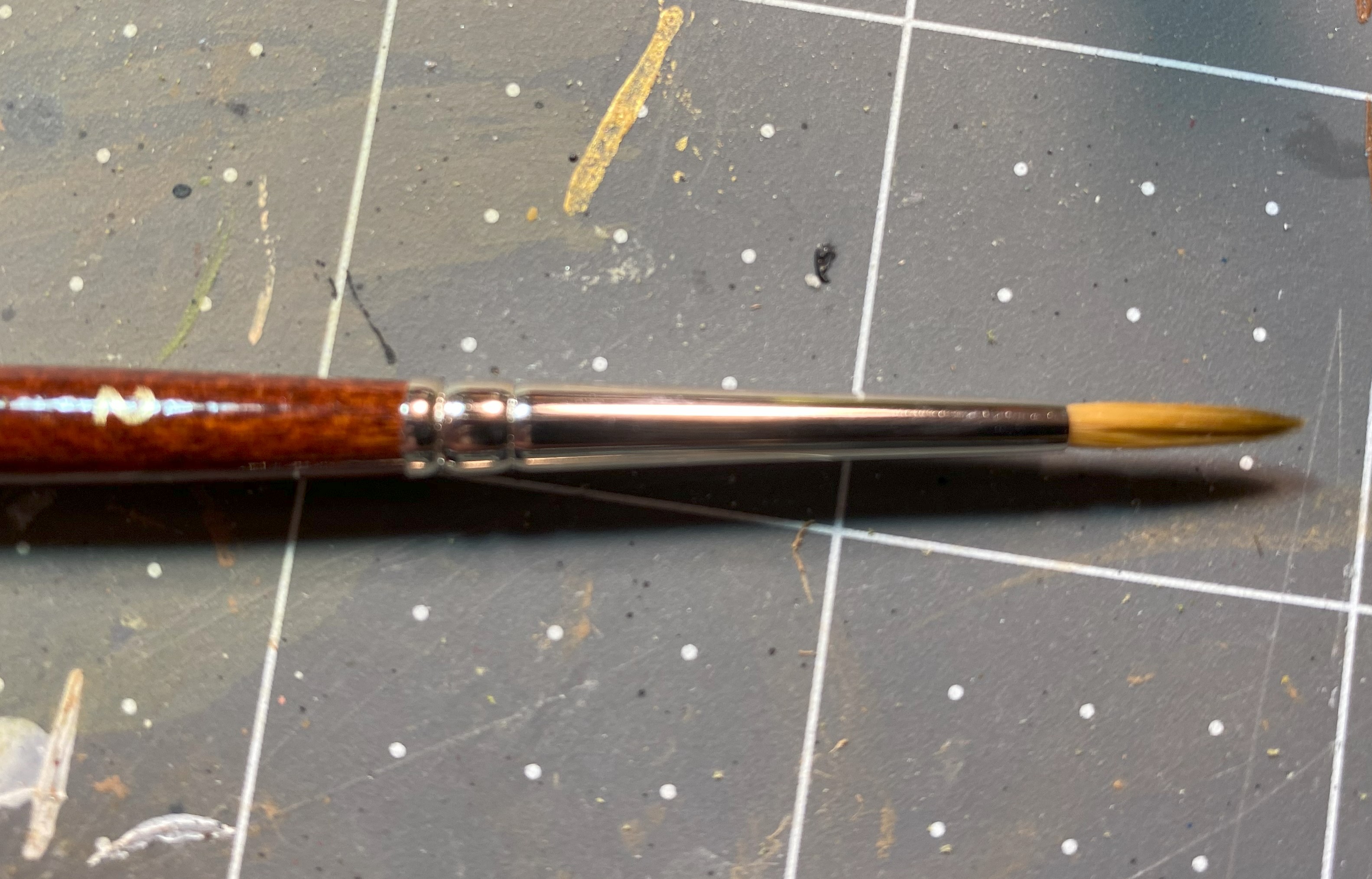 Typically, a synthetic brush’s point begins to curl after a week or two and the brush becomes useless for anything other than painting terrain within 3 to 6 weeks. So, I’m going to use these synthetic brushes as my main brushes beginning today to see how long they will last. If they last long enough, I may switch to using them as my main brushes.
