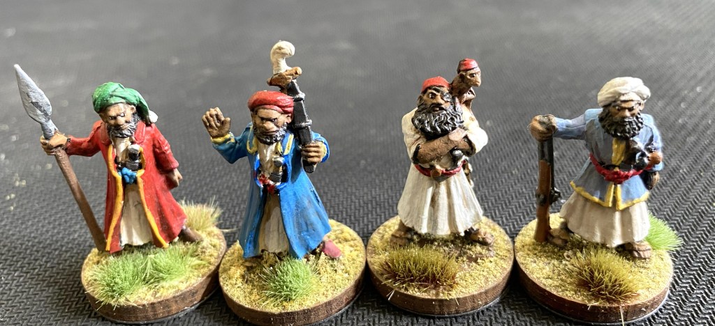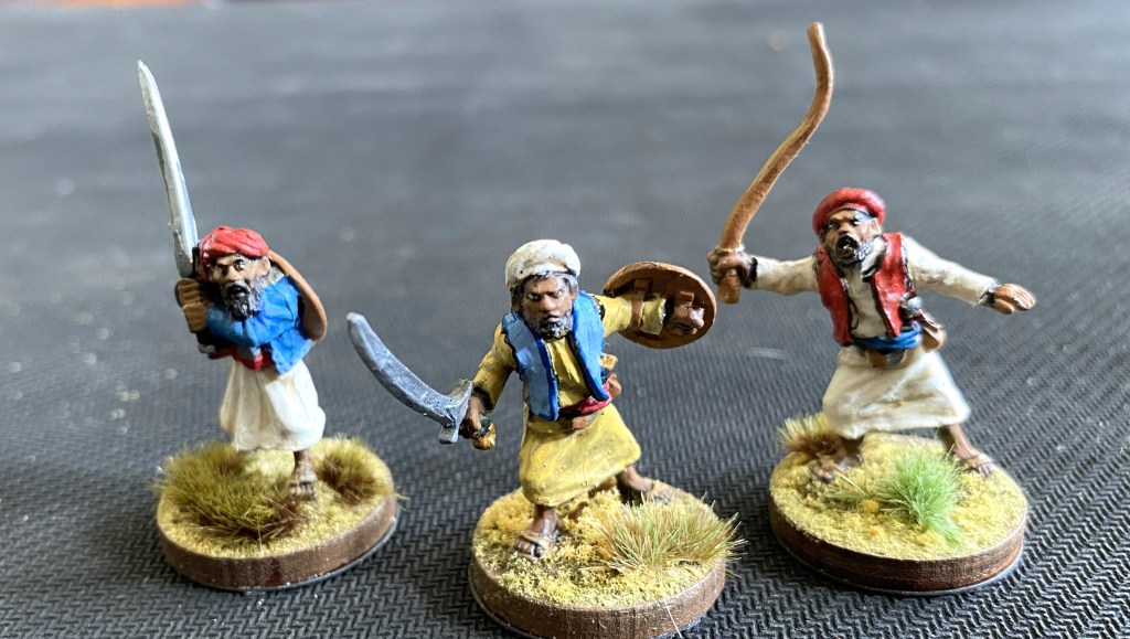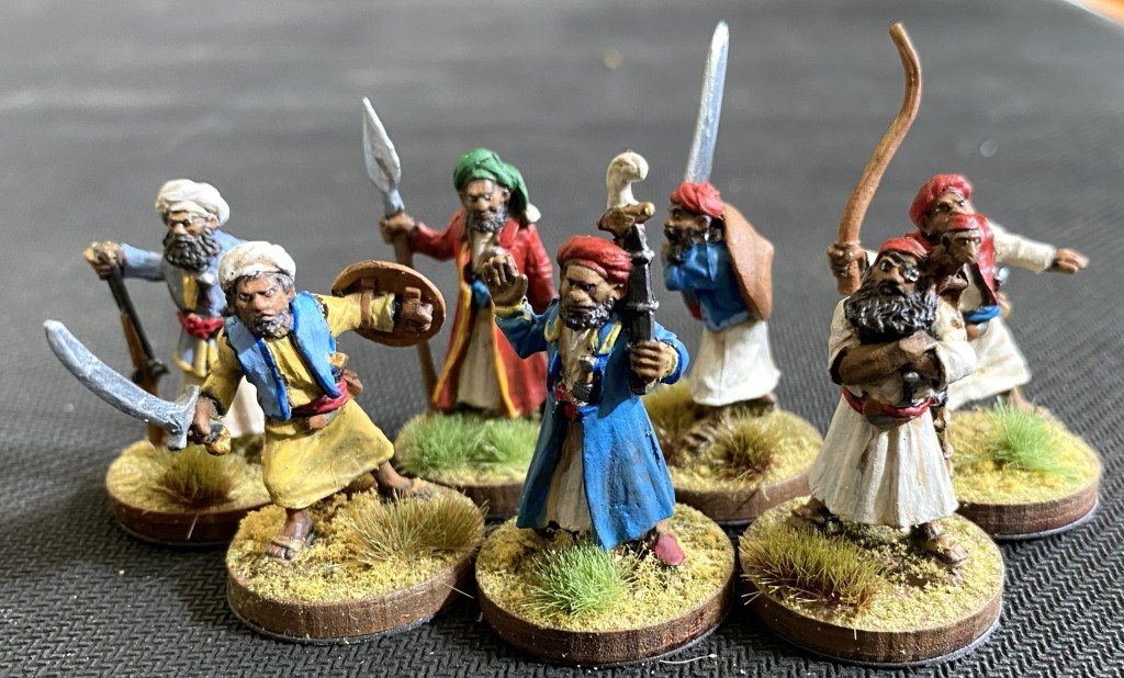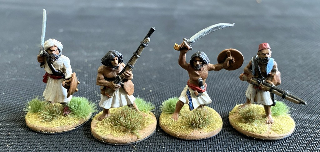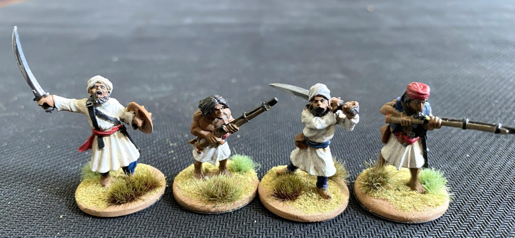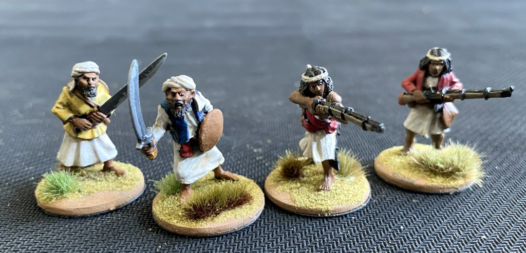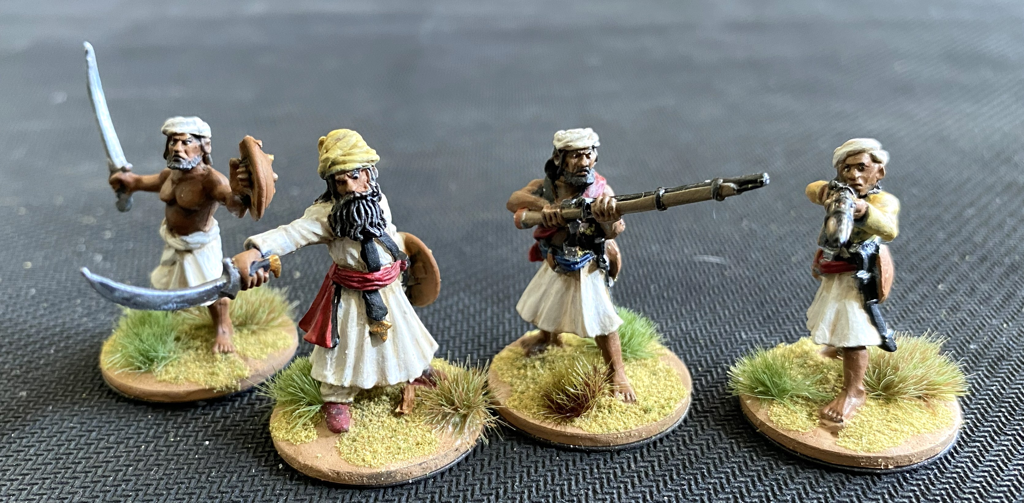 This week I focused on the Baluchi Swordsmen and Arabian Baluchi Matchlockmen packs from Wargames Foundry for a unit of sixteen figures. In addition, I rebased and repainted the Zanzibari Characters pack of seven figures.