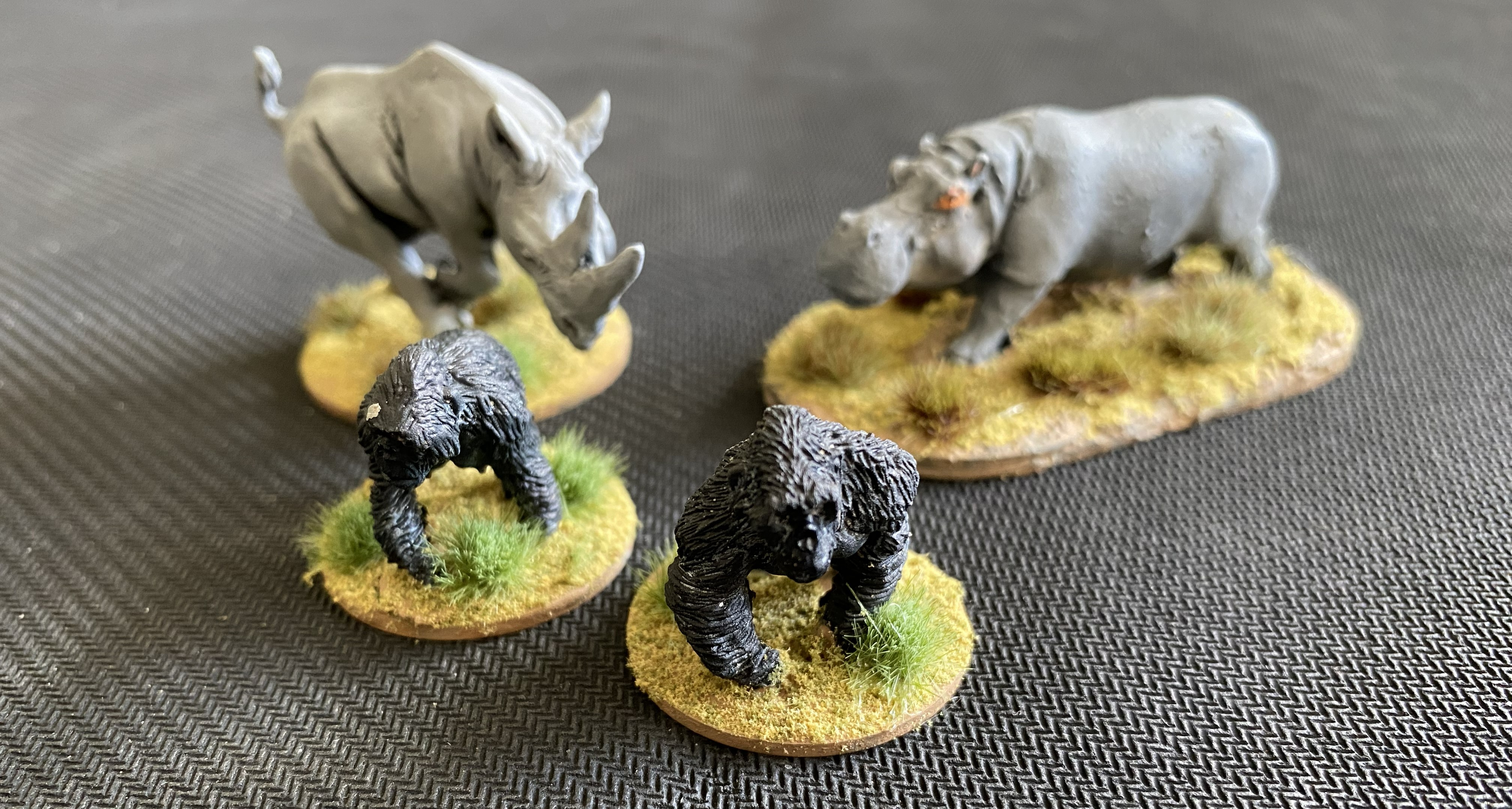 It worked so well, I was able to paint three units: a black rhinoceros, a hippopotamus, and a pair of gorillas (male and female).