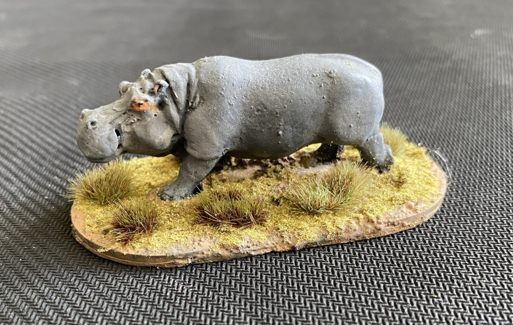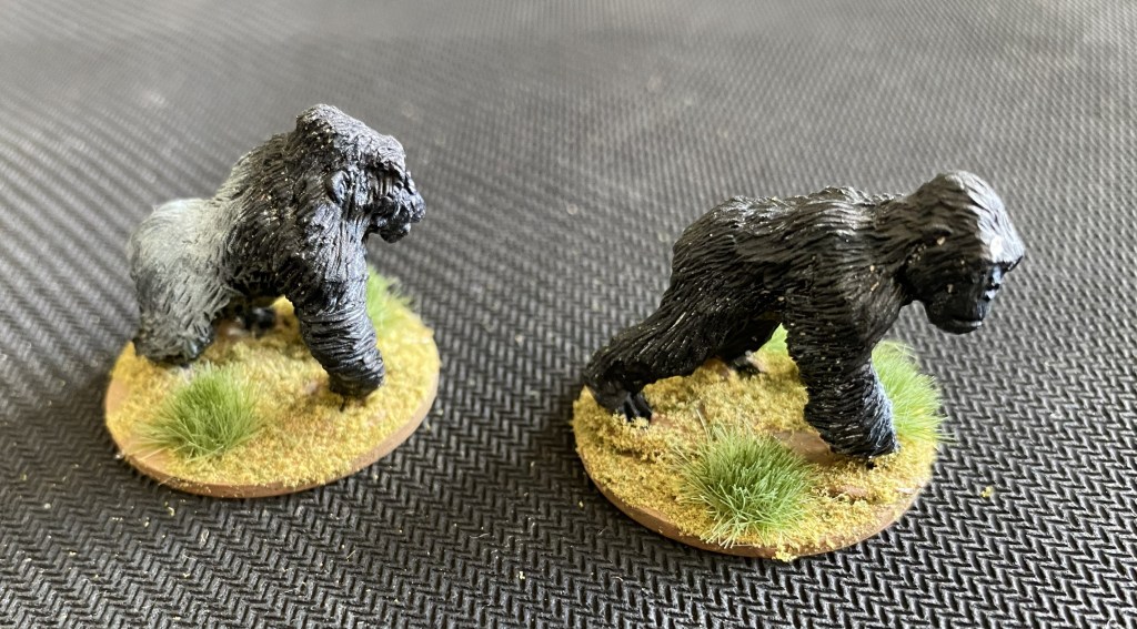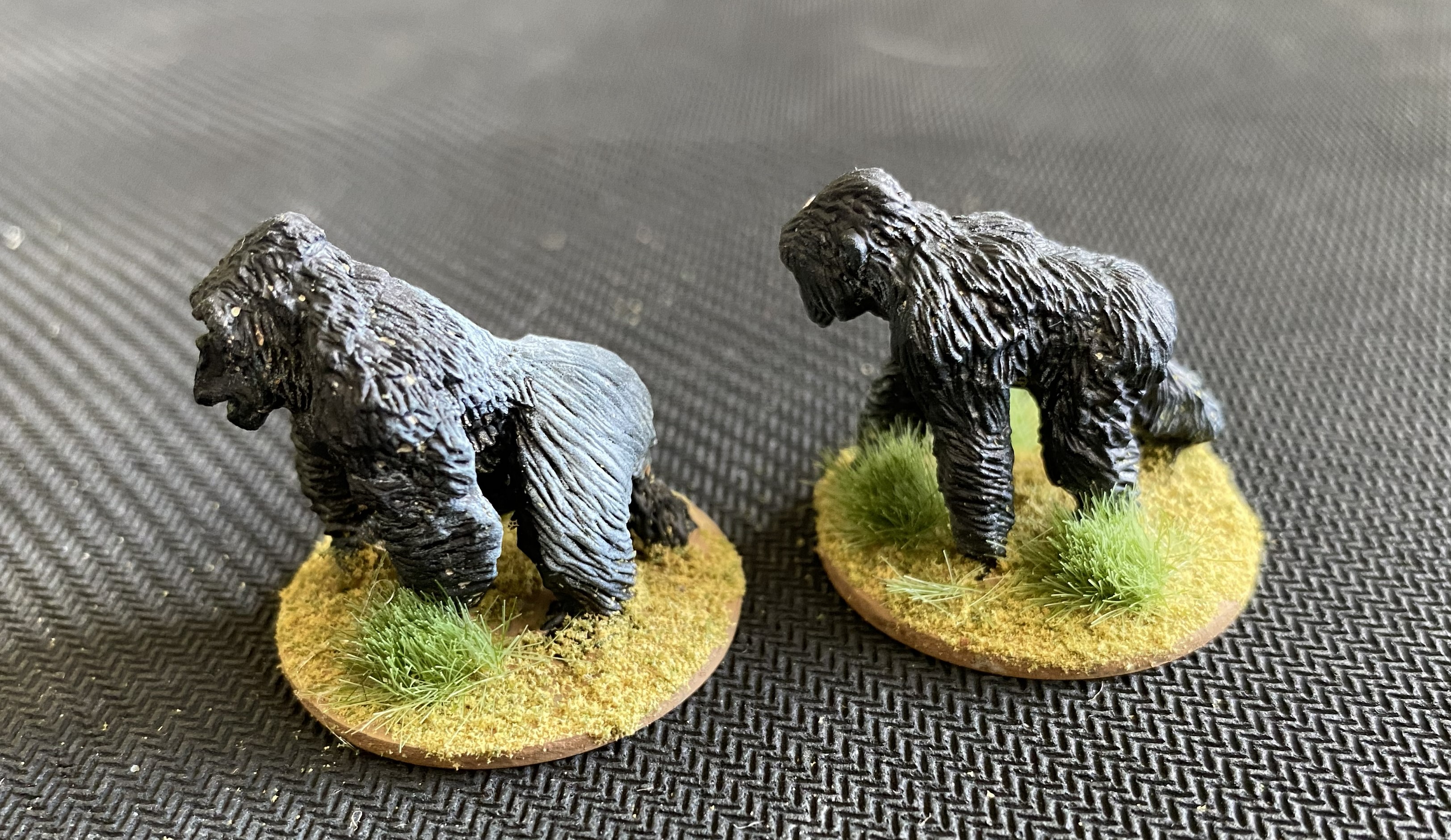 When it became obvious that I would not finish the large group of infantry I was working on for the week, I changed gears Thursday evening and decided to paint something else: dangerous animals. Dangerous animal is a unit which appears, moves, and behaves in a random way in the game Congo. Sometimes these creatures do nothing at all, but sometimes they maul entire units of troops. It’s a game mechanic which I think I will include in my colonial era games regardless of which ruleset I’ll use.